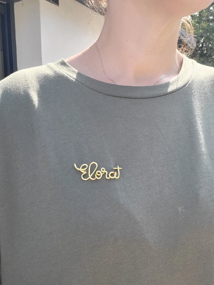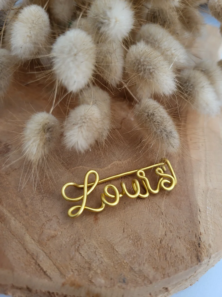 Offrez un cadeau personnalisé rempli d’amour, de tendresse ou d’humour avec cette broche prénom en fil d’aluminium faite main.
