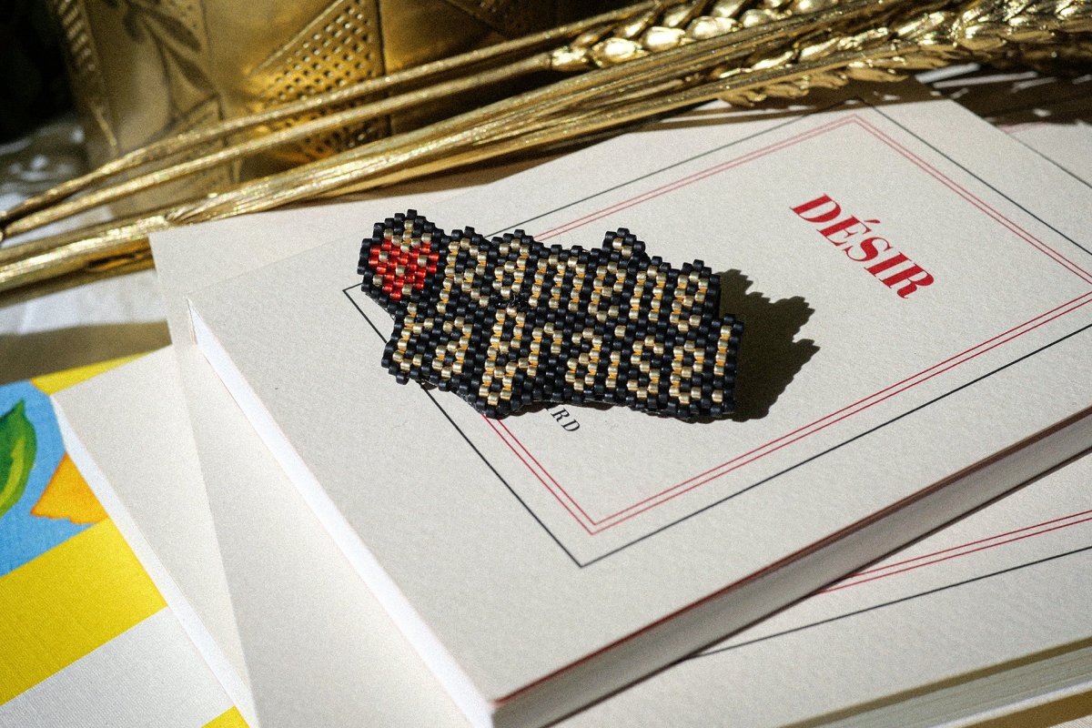 Expression bien connue, transformée en broche stylée ! Ramène ta fraise, c’est fun, c’est frais, et ça se porte avec le sourire. Toujours bien accrochée grâce à sa double fixation + renfort discret. Matériaux :– Perles Miyuki Delicas 11/0 – 2x Pin’s dorés à l’or fin 24 carats Technique du tissage façon Brickstitch, qui consiste […]