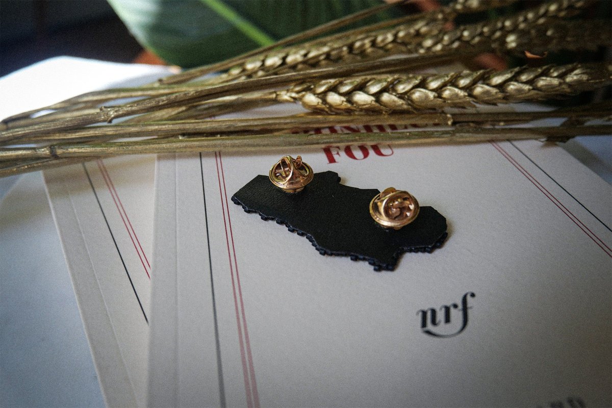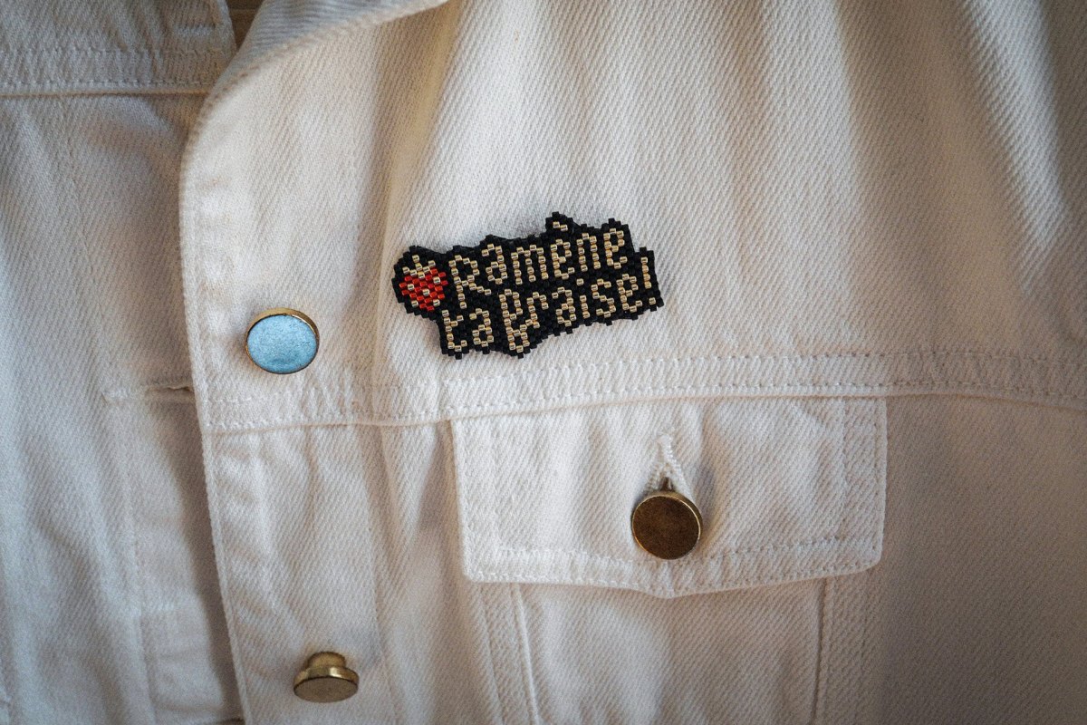 Expression bien connue, transformée en broche stylée ! Ramène ta fraise, c’est fun, c’est frais, et ça se porte avec le sourire.