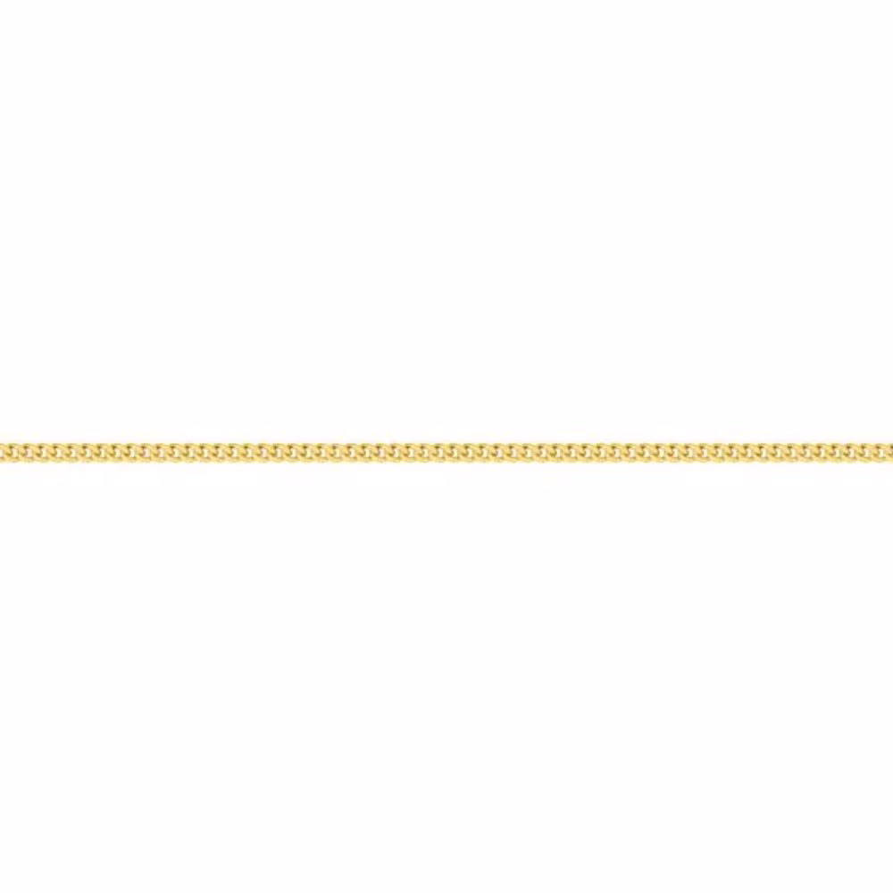 Chaîne en or jaune 18 carats, travaillée en maille gourmette diamantée d’une finesse de 1 mm, idéale pour femme ou enfant. Son éclat délicat en fait un bijou discret et raffiné, à porter seul ou avec un petit pendentif.
