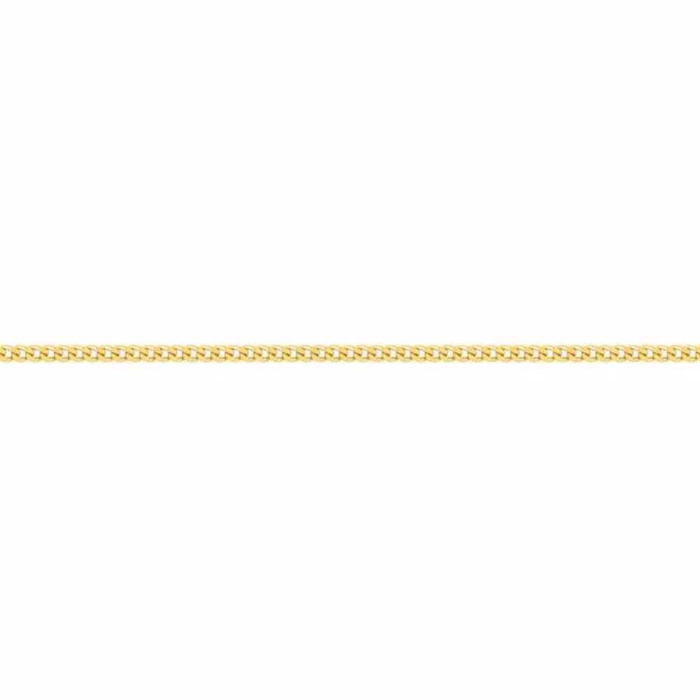 Chaîne en or jaune 18 carats, confectionnée en maille gourmette diamantée avec une largeur de 1.15 mm, pensée pour femme ou enfant. À la fois fine et lumineuse, elle se porte aussi bien seule qu’avec un pendentif léger.