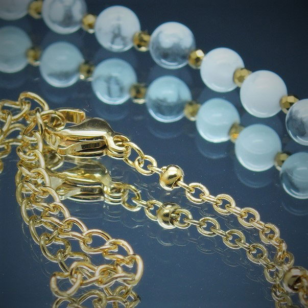 Collier avec pierres naturelles howlite et hématite dorée, harmonie et bien-être naturel