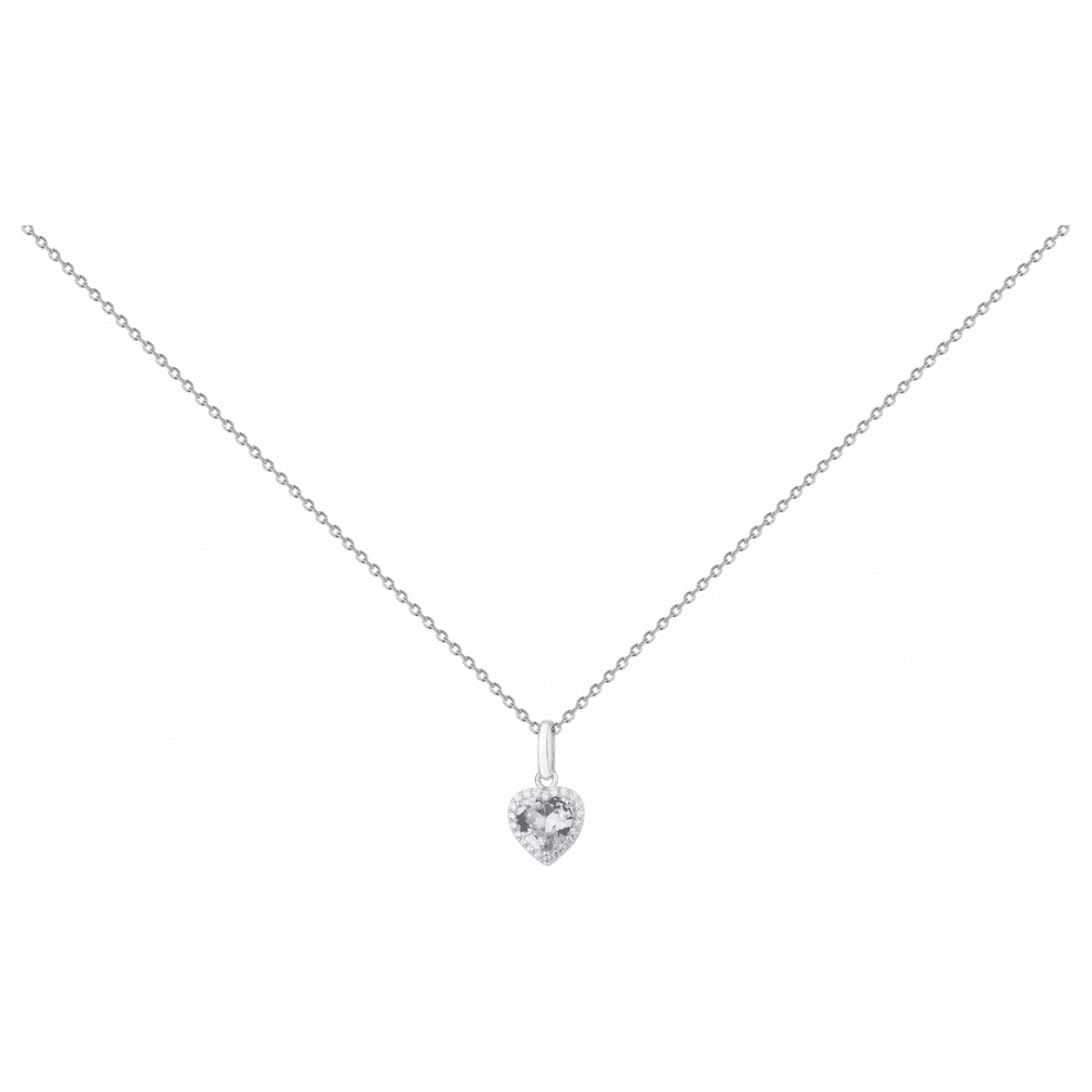 Classique et chic, ce collier en argent met en avant un pendentif en forme de cœur sur lequel un magnifique oxyde de zirconium bleu clair trouve sa place. Il est entouré d’un petit pavage en oxyde blancs.