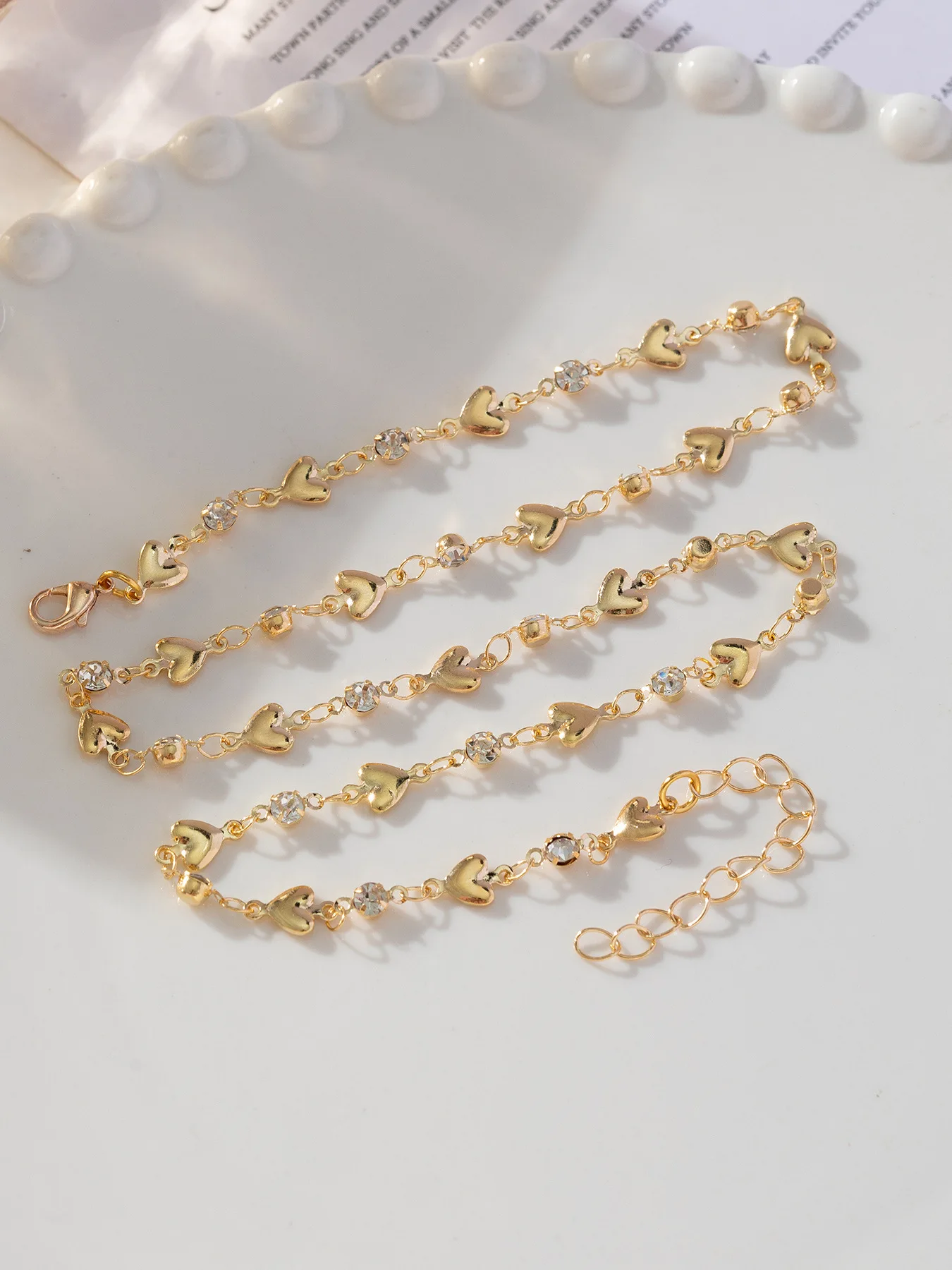 Collier et bracelet à longue chaîne vintage en forme de Y pour femme, ensemble de bijoux esthétiques Y2K couleur or clair et luxueux en forme de cœur avec cristal