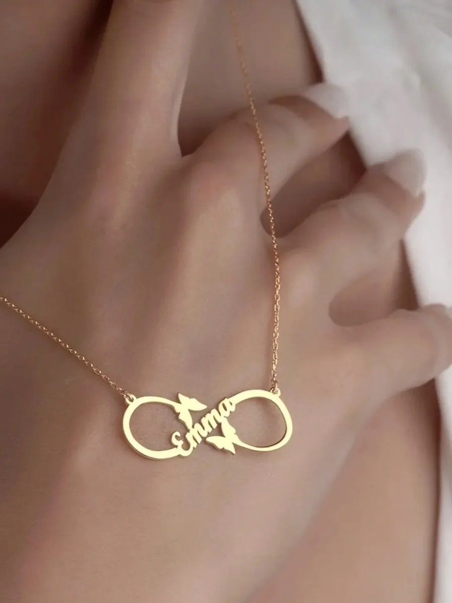 Colliers personnalisés avec nom de papillon infini pour femmes, collier à breloques avec nom en acier inoxydable couleur or, bijoux de festival, cadeau