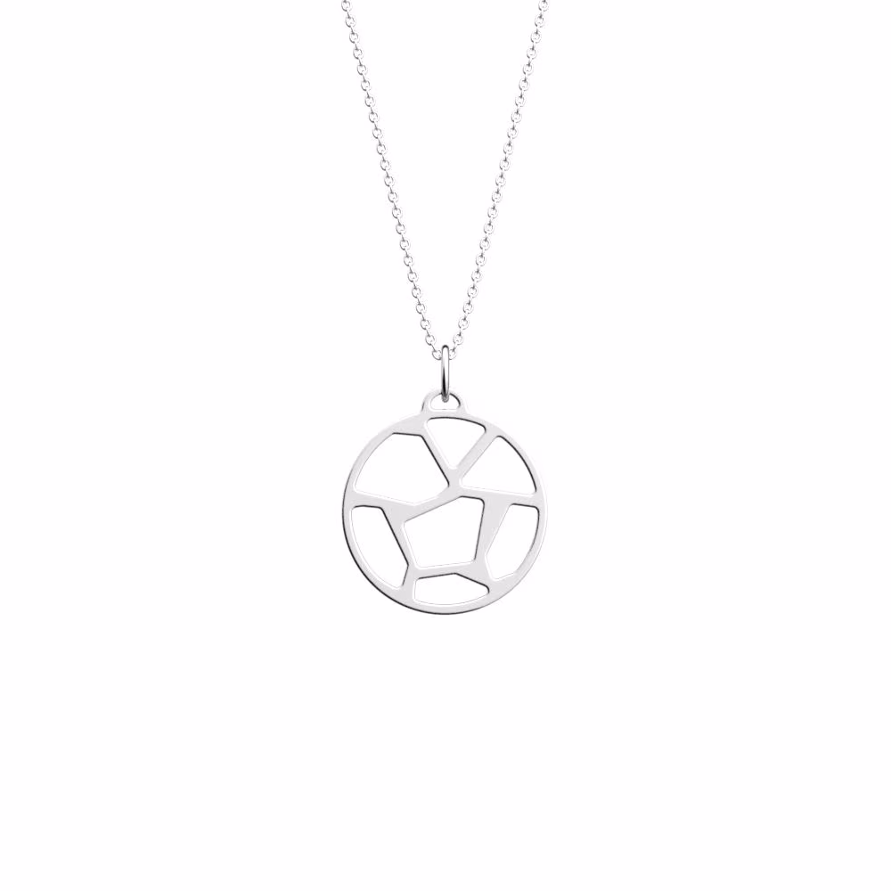 Son motif central de 25 mm au design martelé, à la fois brut et raffiné, capte la lumière avec élégance. Monté sur une chaîne réglable de 45 à 50 cm, il se positionne idéalement au creux du cou pour sublimer votre décolleté.