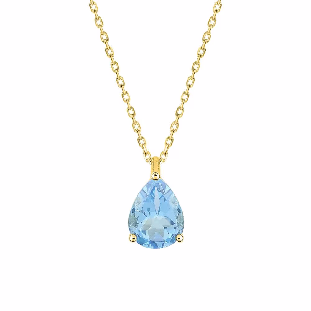 Collier femme en or jaune avec pendentif topaze bleue poire