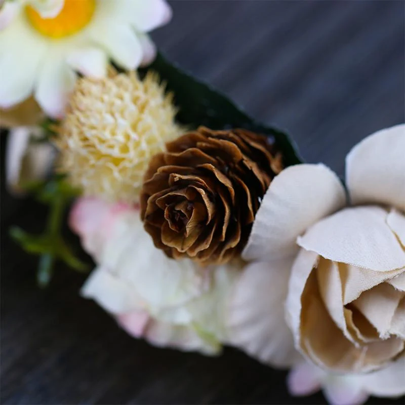 Une couronne de fleurs pour un visage et une chevelure naturelle