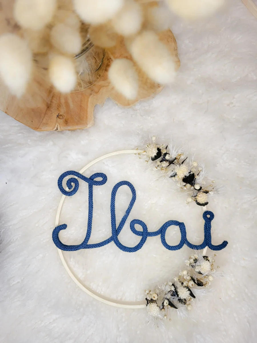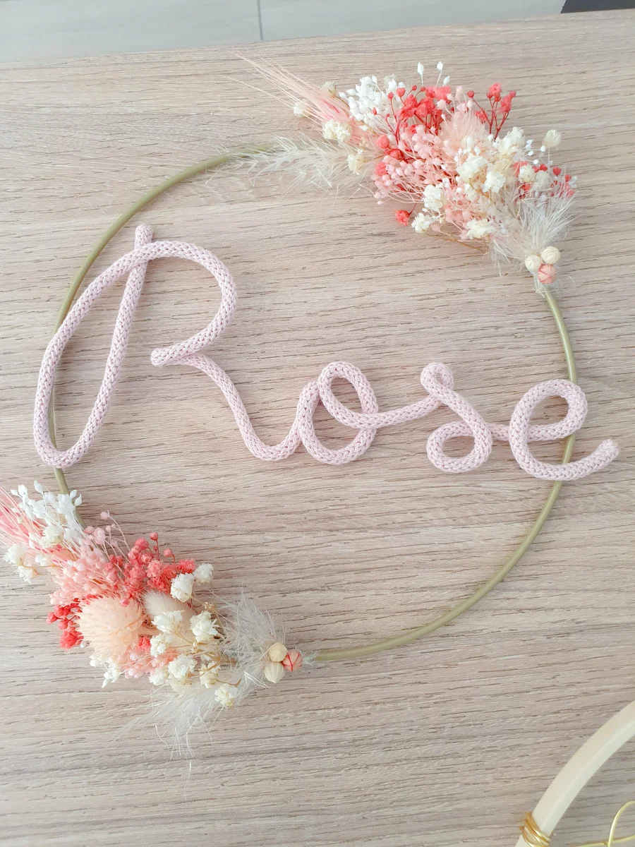 Couronne fleurs séchées prénom, cadeau de naissance personnalisé, décoration bohème chambre bébé