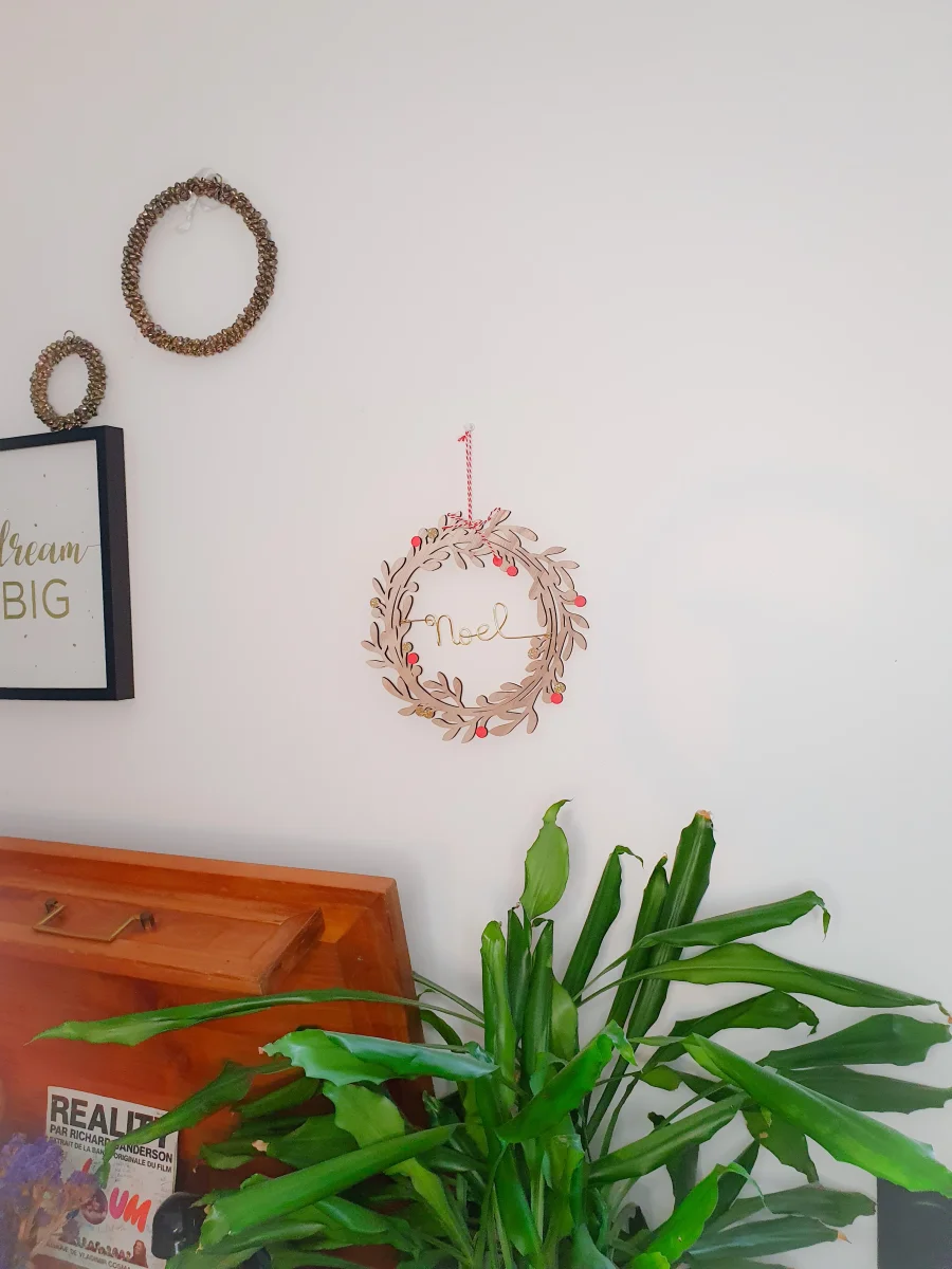 Couronne de Noël en bois à suspendre à un sapin ou à une cheminée, à accrocher à une porte pour accueillir les invités.