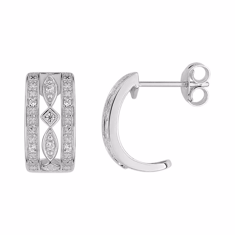 Démi créoles en or blanc rhodié et 7 diamants