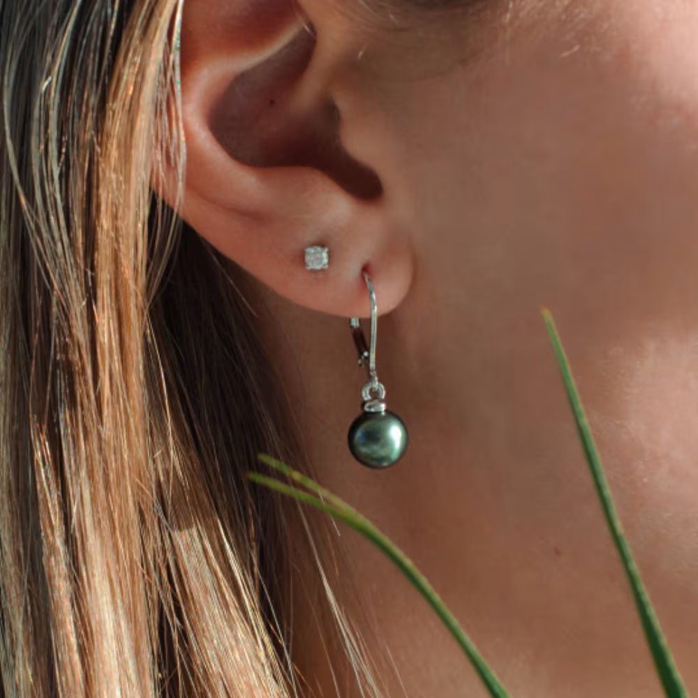 Dormeuses au design épuré, Iza B propose des boucles d’oreilles intemporelles ornées de perles de Tahiti qui sublimeront vos tenues.