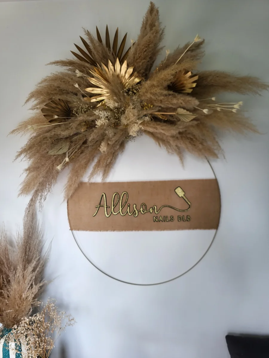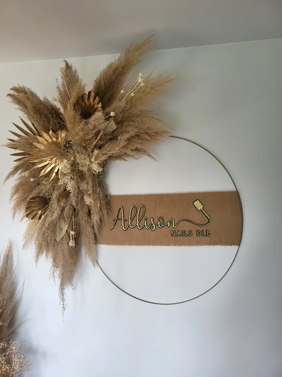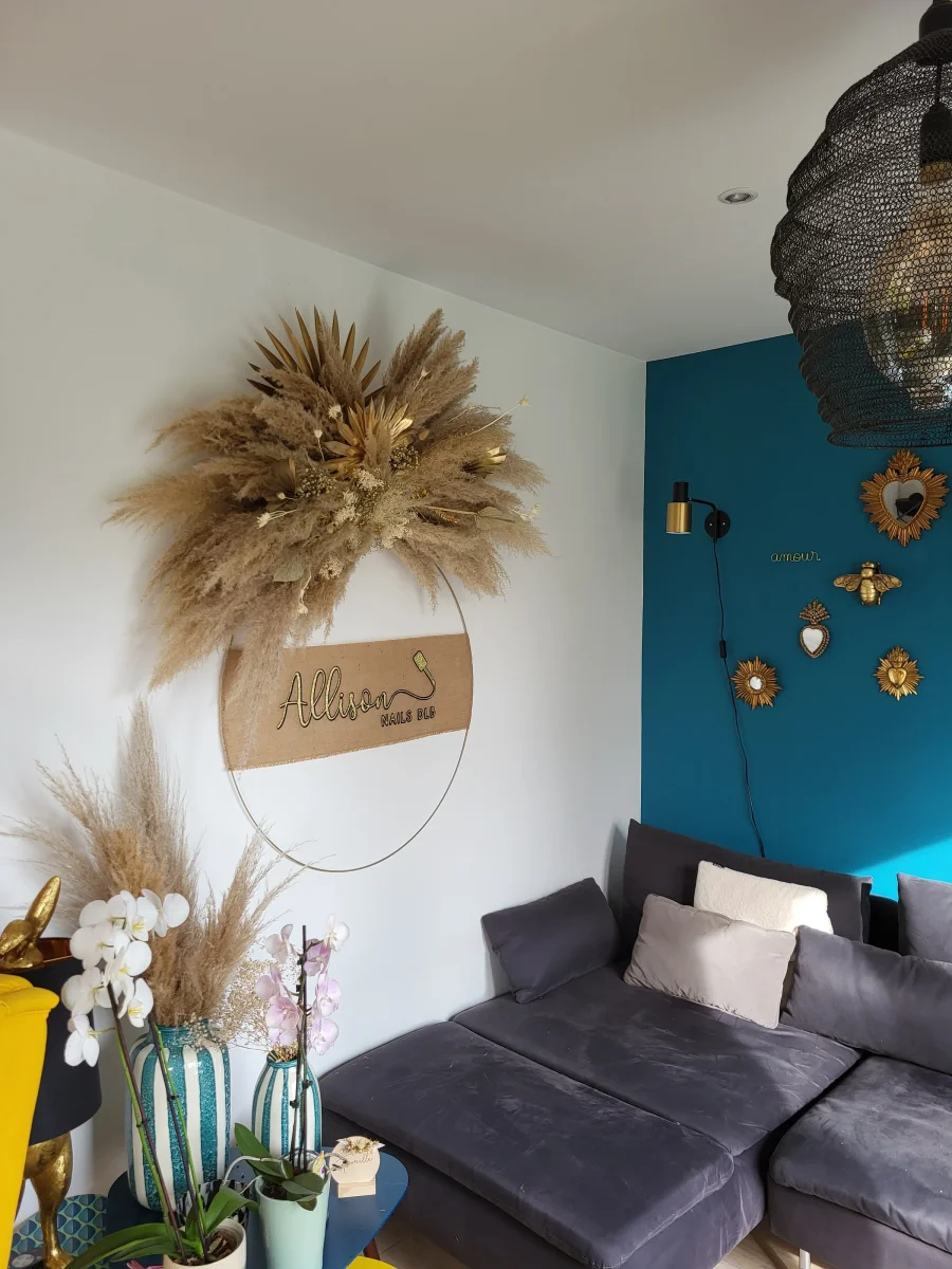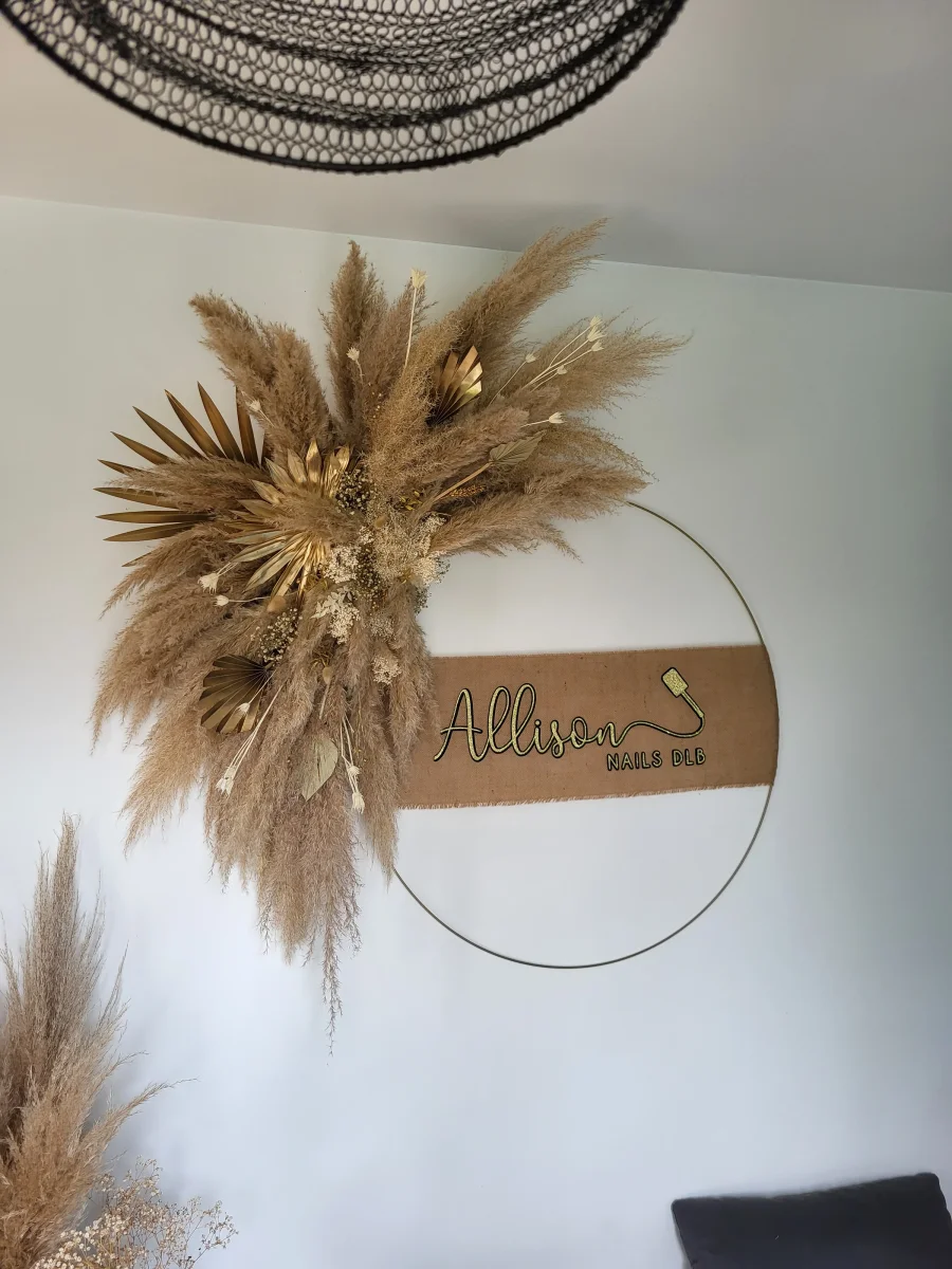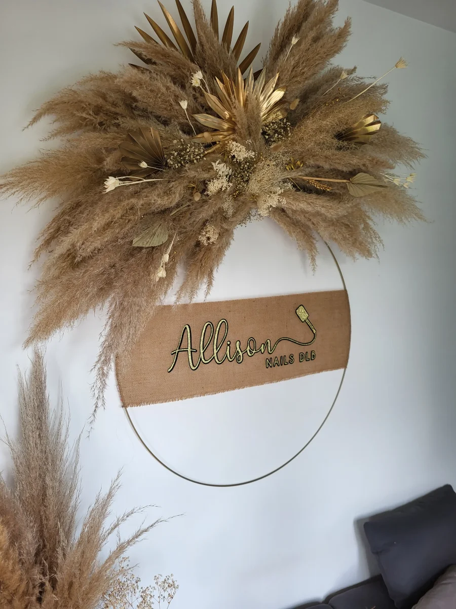 Couronne murale décorative style bohème avec herbes de la pampa en taille XXL. Couronne 80cm Suspension florale de 1,20m x 60cm Personnalisation de votre logo ou phrase de votre choix sur toile de jute. Les herbes de la pampa et fleurs sont séchées naturellement. Possibilité de créer un modèle d’une autre taille et avec des […]