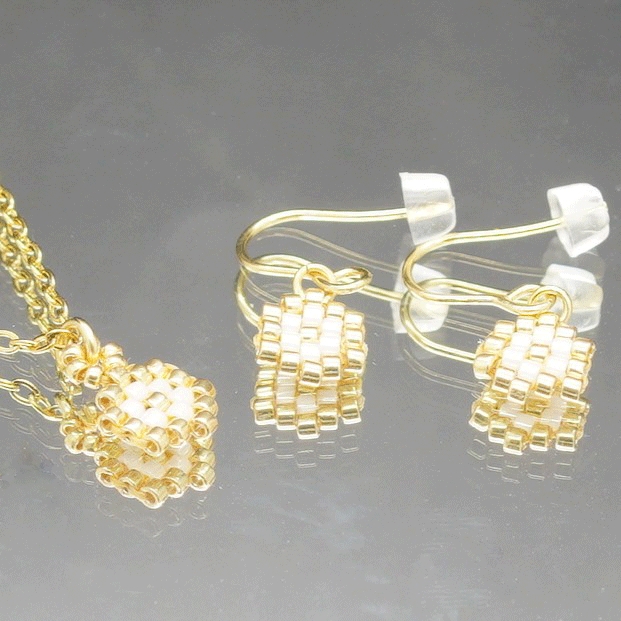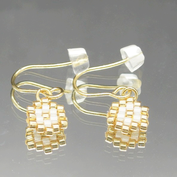 ✨ Matériaux : Perles de rocaille Miyuki Delica (Crème & Or), crochet en acier inoxydable doré
