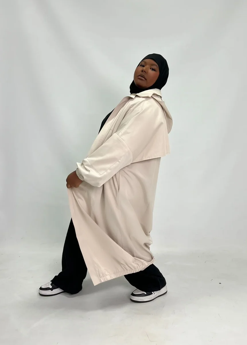 - Coupe longue et oversize : Assure une couverture totale tout en offrant une grande liberté de mouvement.
