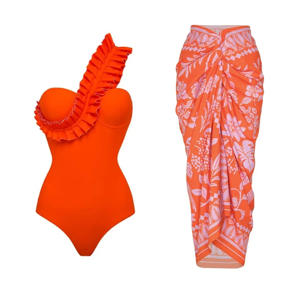 Maillot de bain 1 pièce asymétrique orange : élégance et style pour l’été