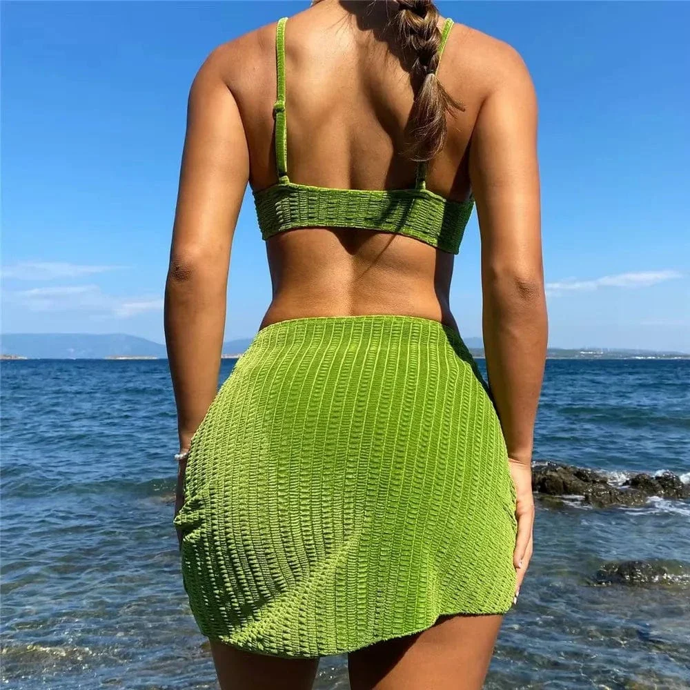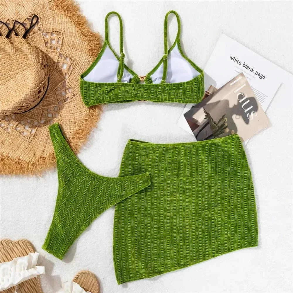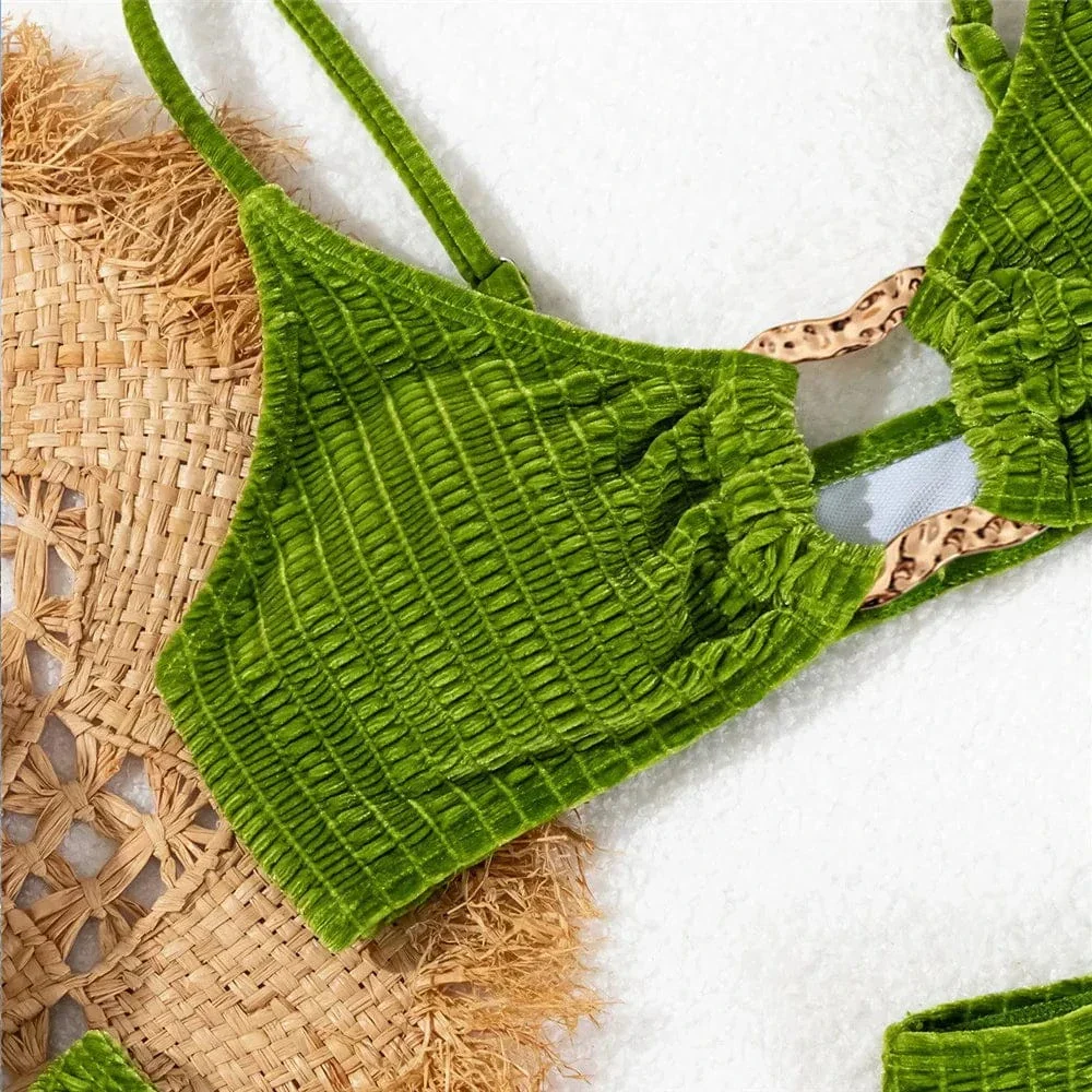 Maillot de bain femme 3 pièces vert : splendeur veloutée pour l’été