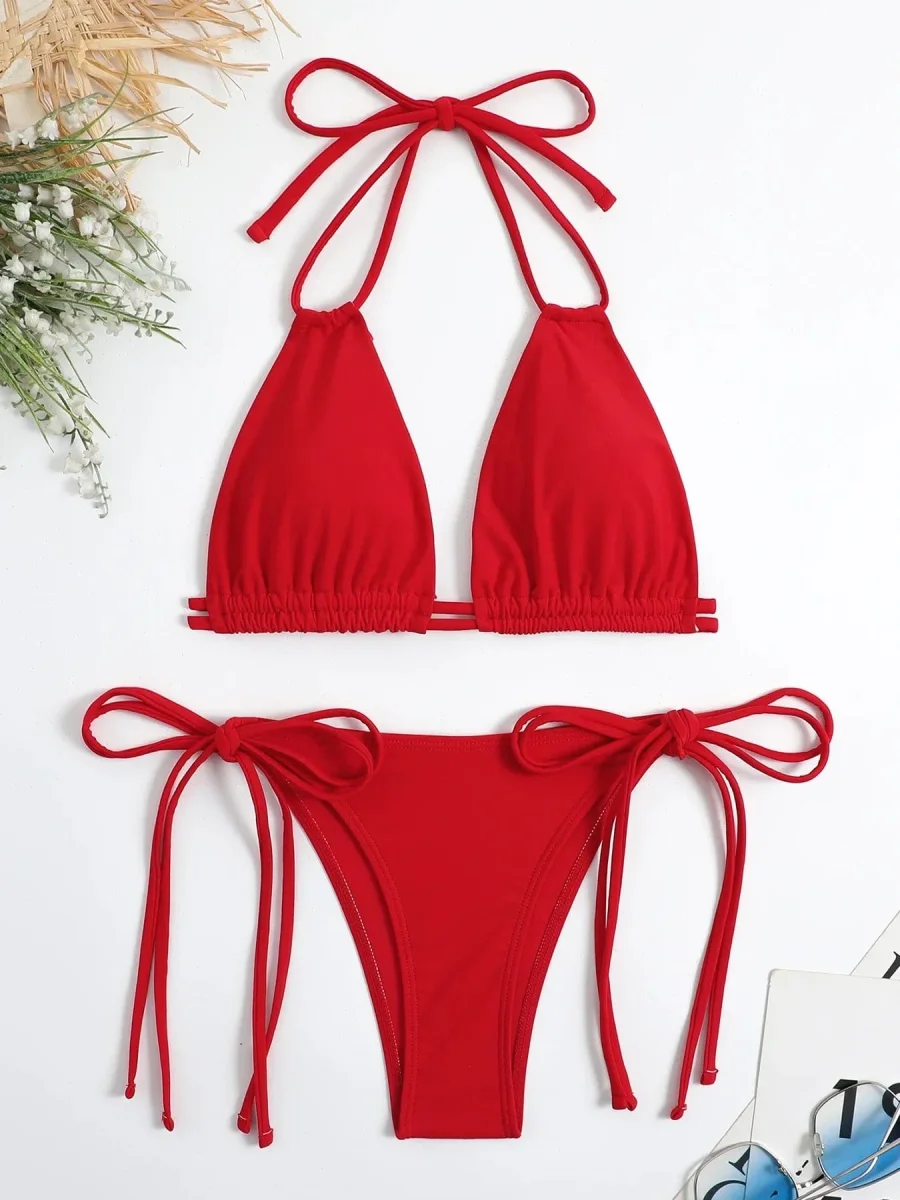Plongez dans la tendance estivale avec notre maillot de bain femme à ficelles tendance de la collection 2025. Ce modèle deux pièces à la coupe brésilienne sublime votre silhouette grâce à sa conception push-up flatteuse et sa taille basse séduisante. Confectionné en nylon et spandex de haute qualité, ce bikini offre un maintien parfait sans armatures pour un confort optimal lors de vos journées à la plage ou au spa. Son style bandage halter avec bretelles ajustables s’adapte parfaitement à votre morphologie, pour un bronzage impeccable et un look estival irrésistible !