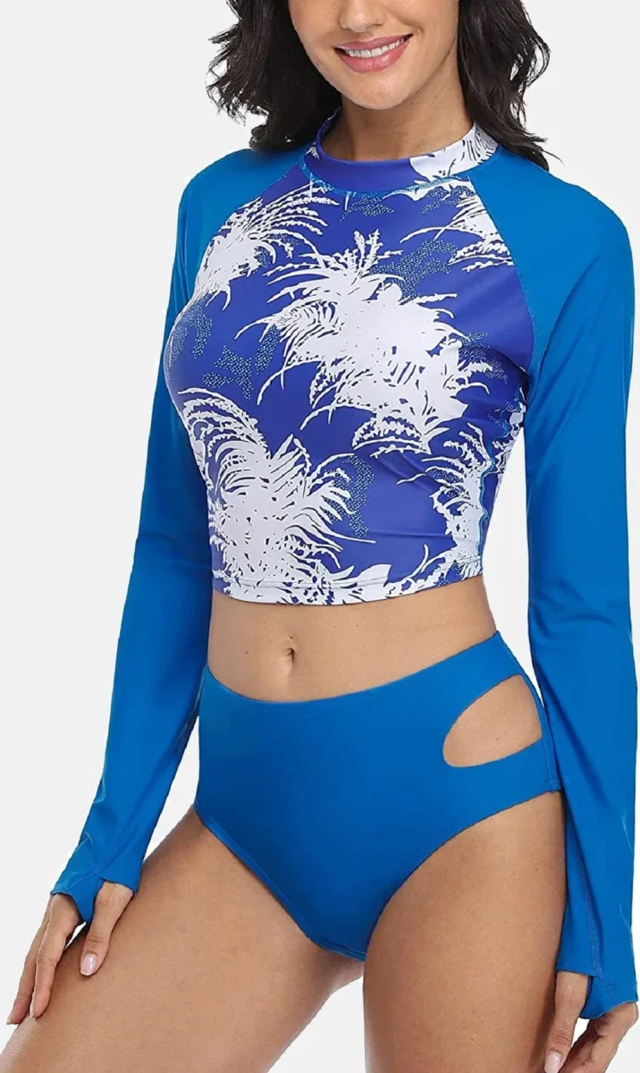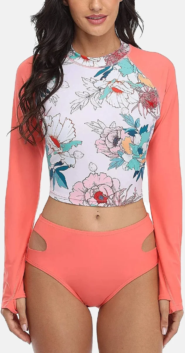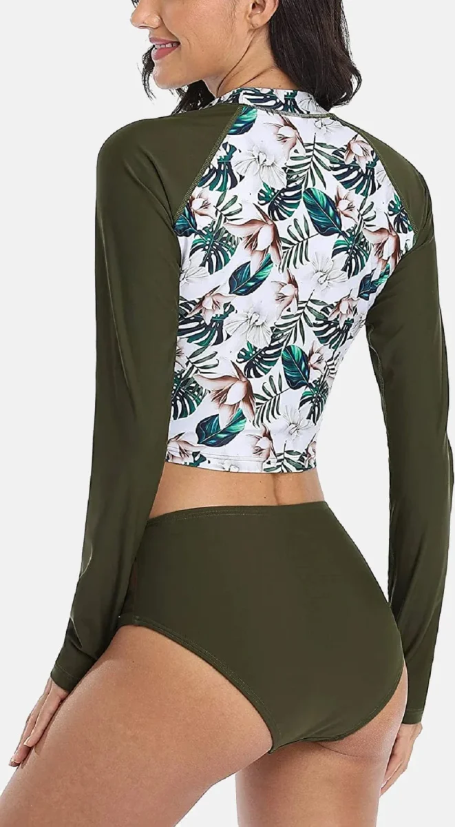 Découvrez notre maillot de bain deux pièces, conçu pour les femmes qui ne souhaitent pas compromettre le style pour la protection. Ce modèle floral à manches longues offre une couverture UPF 50+ contre les rayons nocifs, tandis que sa coupe ajustée et son design élégant subliment votre silhouette. Fabriqué en nylon et spandex de haute qualité, ce maillot de bain femme allie confort, respirabilité et séchage rapide. Son motif floral tendance vous garantit une allure sophistiquée au bord de la piscine comme sur la plage !