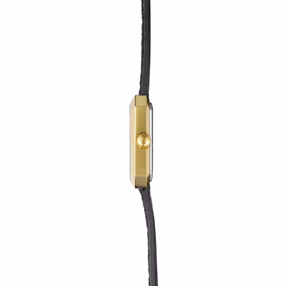 Le verre saphir protège efficacement contre les rayures, tandis que le bracelet en cuir noir brillant, associé à une boucle ardillon, complète ce modèle avec un style intemporel.