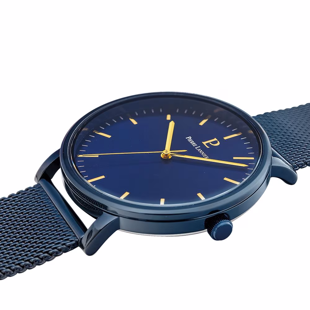 Soyez le premier à laisser votre avis sur “Montre homme Pierre Lannier Essential, acier bleu, aiguilles dorées”