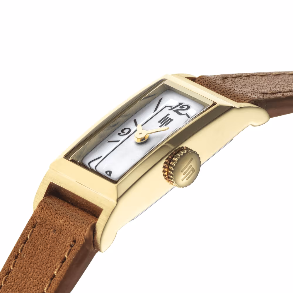 Montre femme Lip Churchill T13 Baguette dorée et cuir marron