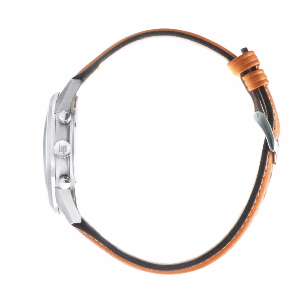 Le verre saphir assure une excellente résistance aux rayures, tandis que l’étanchéité 50 mètres permet une utilisation sans contrainte. Le bracelet en cuir marron lisse apporte une note naturelle et authentique, idéale pour un look à la fois habillé et décontracté.