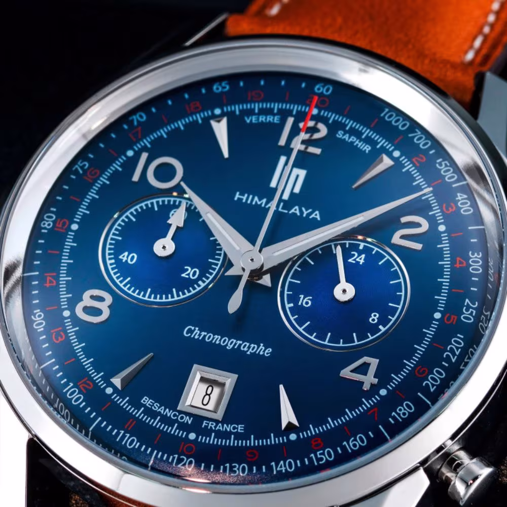 Avec la montre Lip Himalaya Chronographe 671597, le style prend une tournure plus chaleureuse grâce à l’association du cadran bleu profond et du bracelet en cuir marron. Un modèle qui allie design contemporain et touches vintage, tout en restant fidèle à l’excellence horlogère française.
