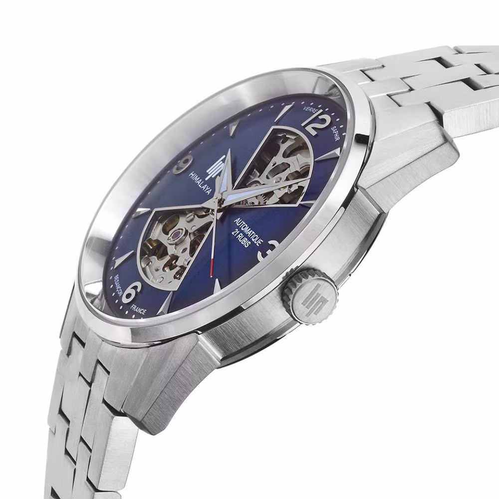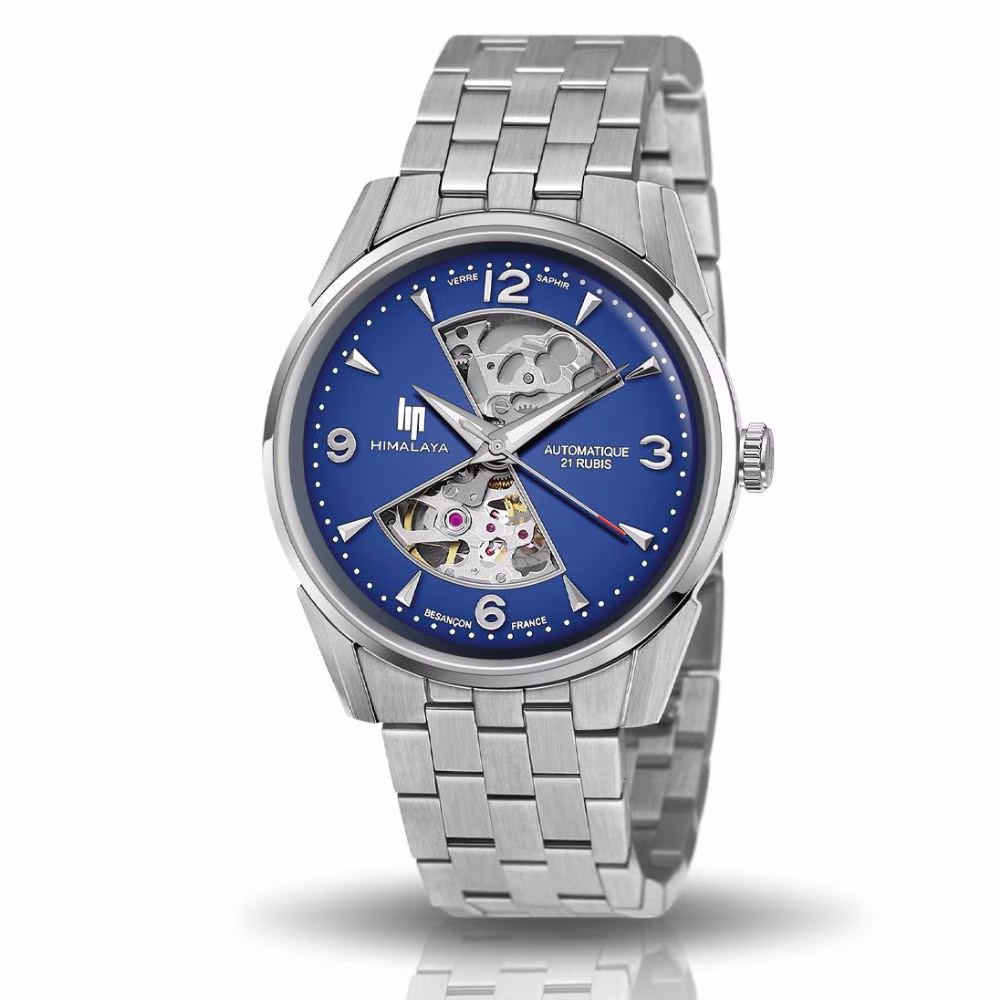 Montre Homme Lip Himalaya Sablier Automatique Acier Cadran Bleu
