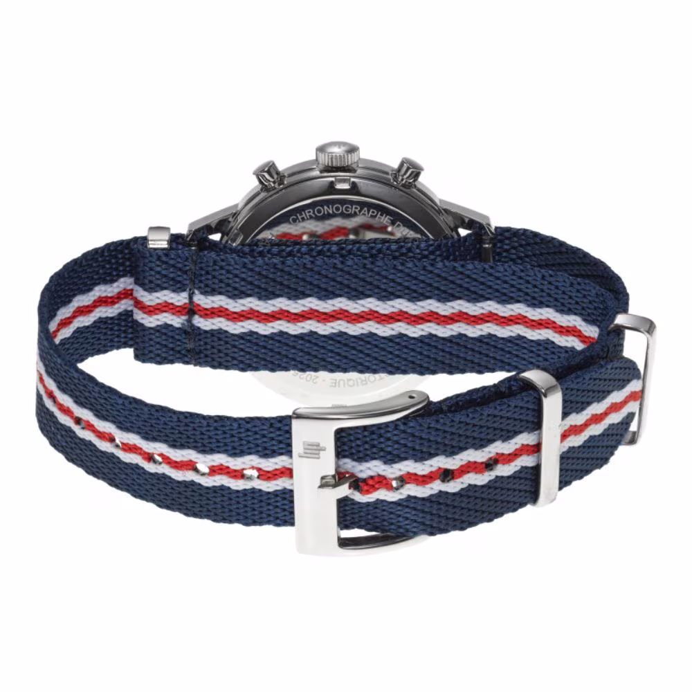 Le bracelet NATO bleu, blanc et rouge reprend les couleurs du drapeau français. Il assure un excellent maintien et un confort léger au poignet. La boucle traditionnelle permet un ajustement rapide et sûr.