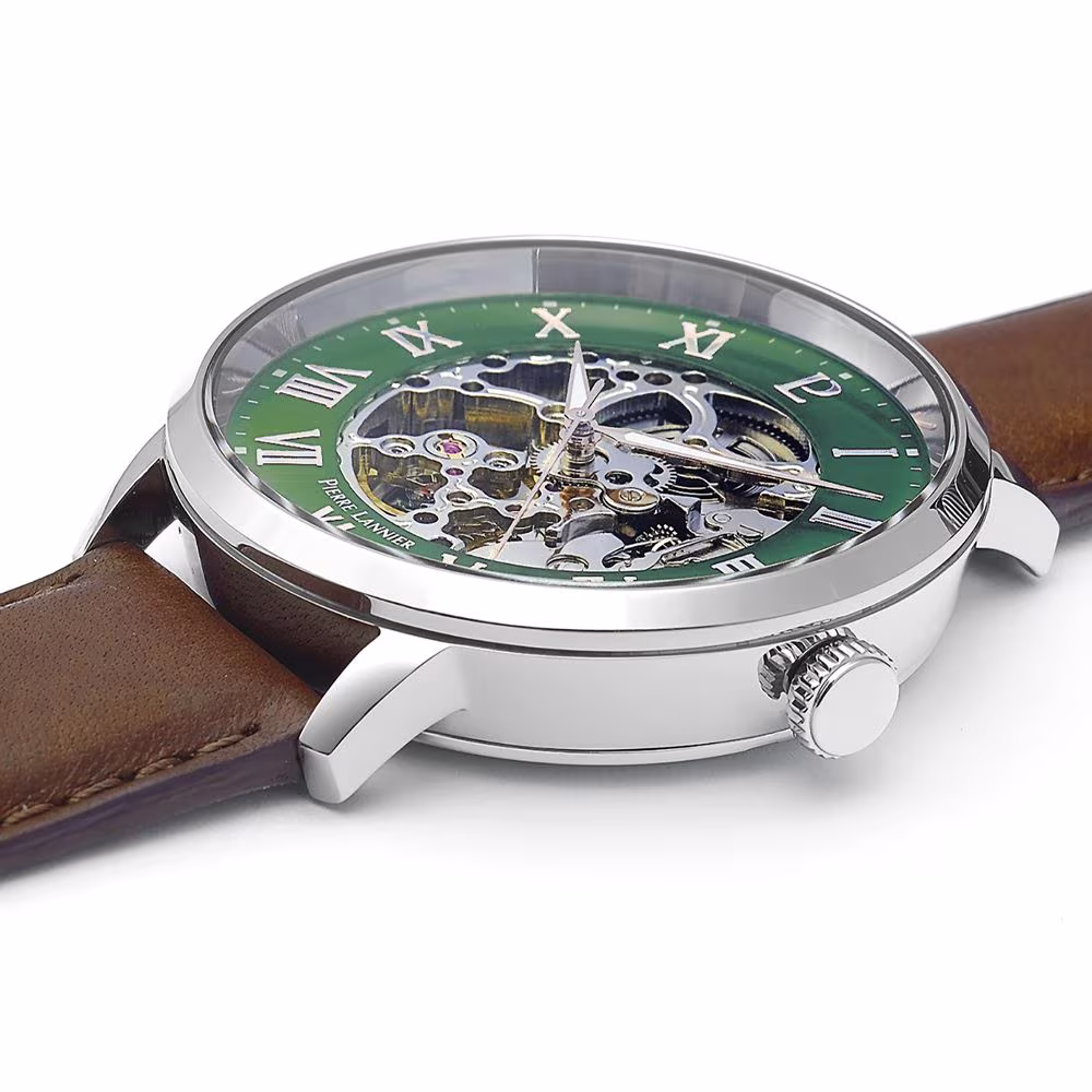 Montre Homme Pierre Lannier – Automatic – Cadran Vert & Cuir Marron
