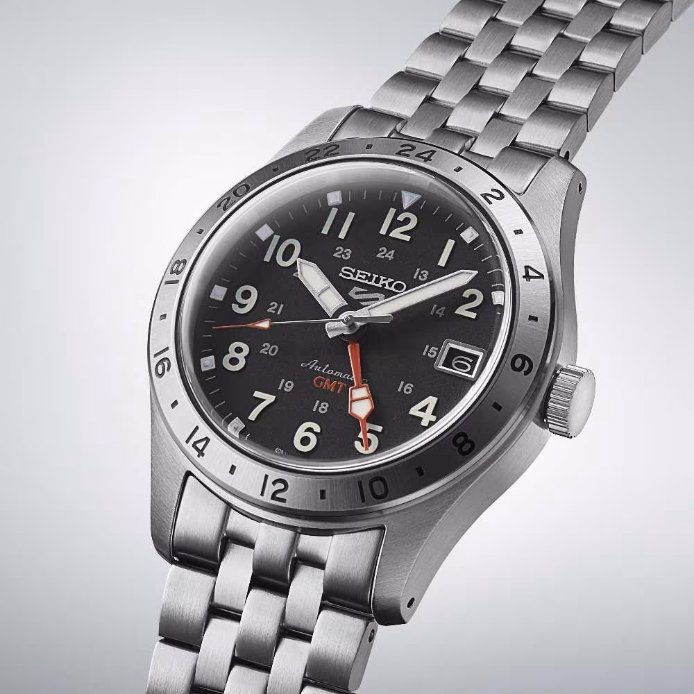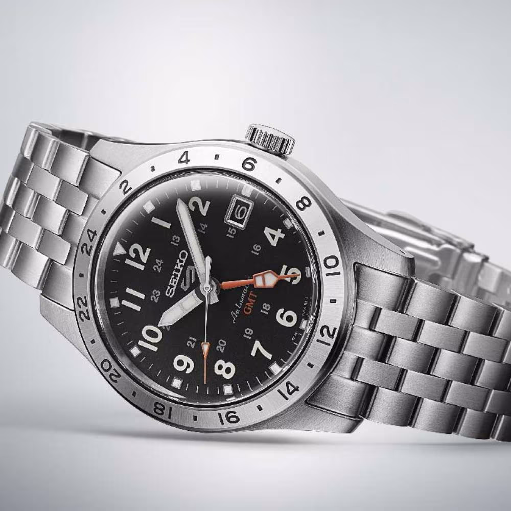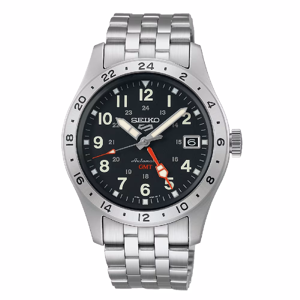 Montre homme Seiko 5 Automatique GMT acier cadran noir, SSK023K1