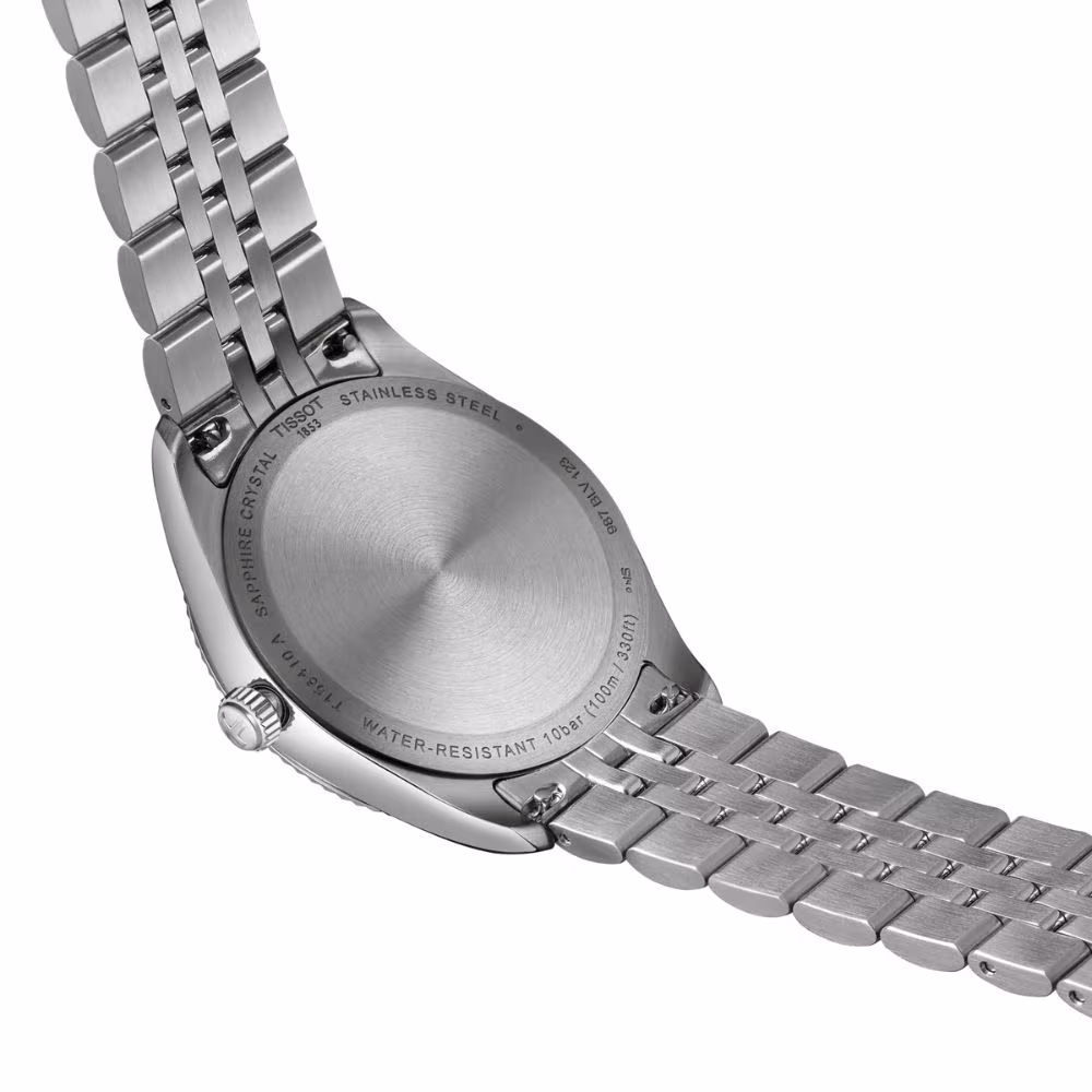 Fabriquée en Suisse, cette Tissot est étanche à 100 m. Elle est couverte par une garantie de 2 ans.