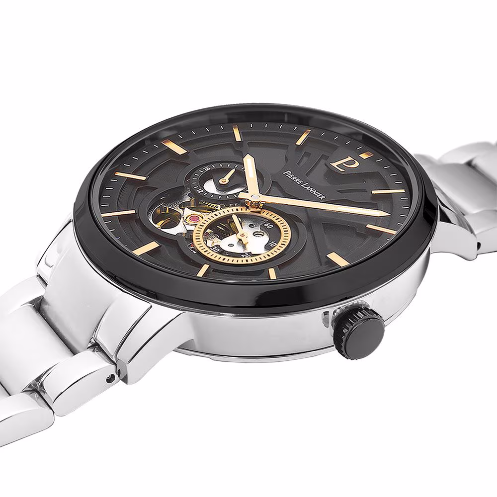 Affichez votre raffinement avec la montre Pierre Lannier Trio Automatique au cadran noir et au bracelet en acier, et soyez prêt à briller en toutes occasions. Une montre qui transcende le temps et le style.