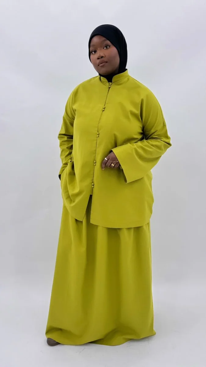 Découvrez notre ensemble deux pièces composé de lin, comprenant une tunique à col bao et une jupe avec poches, ornées de finitions élégantes aux manches et au col pour une touche sophistiquée. Le premier mannequin porte une taille 1,le second mannequin porte une taille 2 – La taille 1 convient du S, M et L.– […]