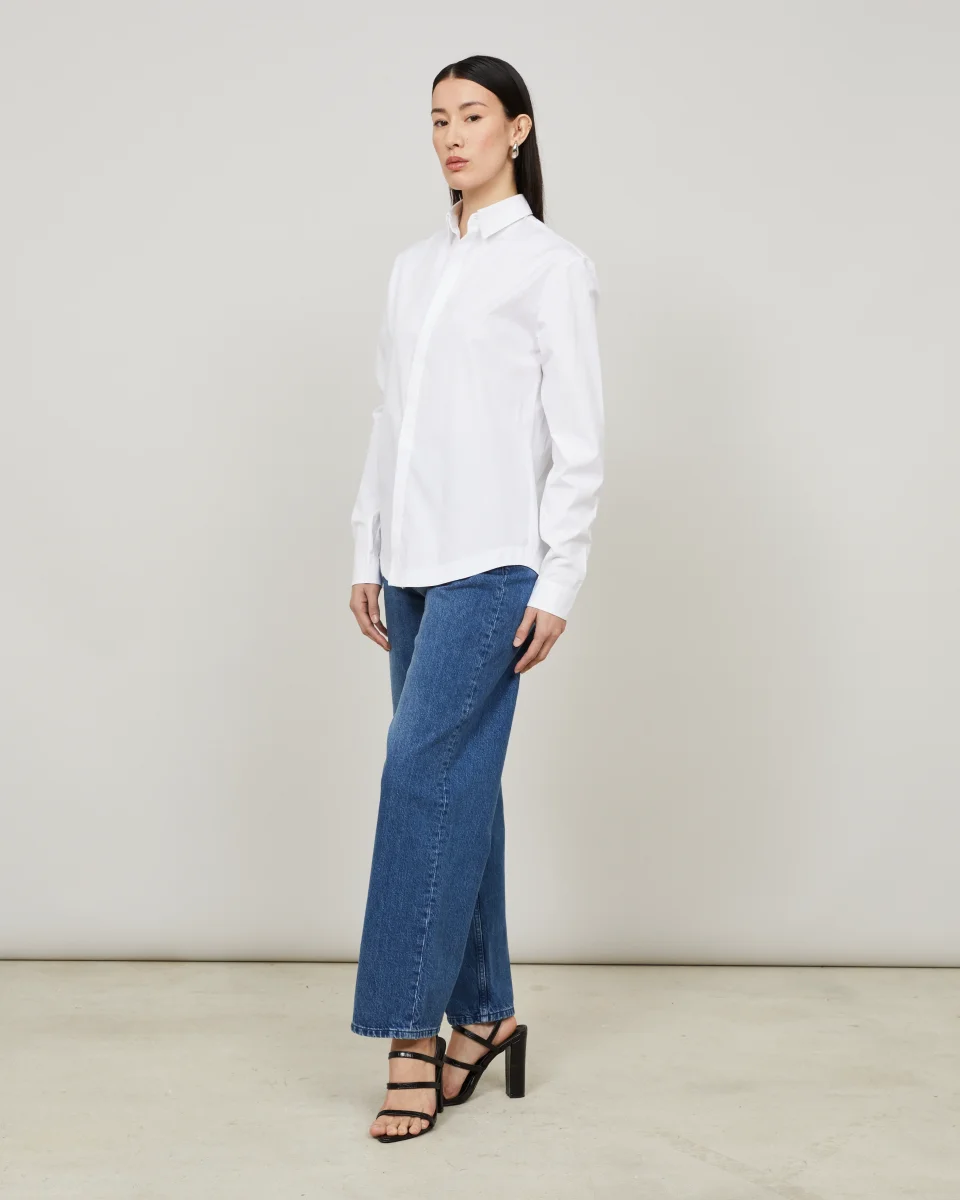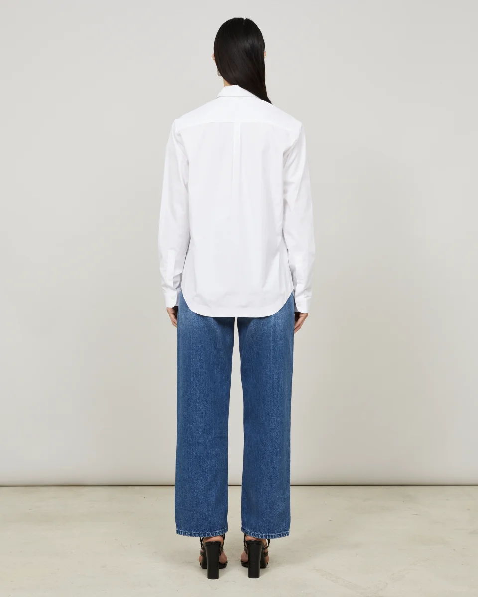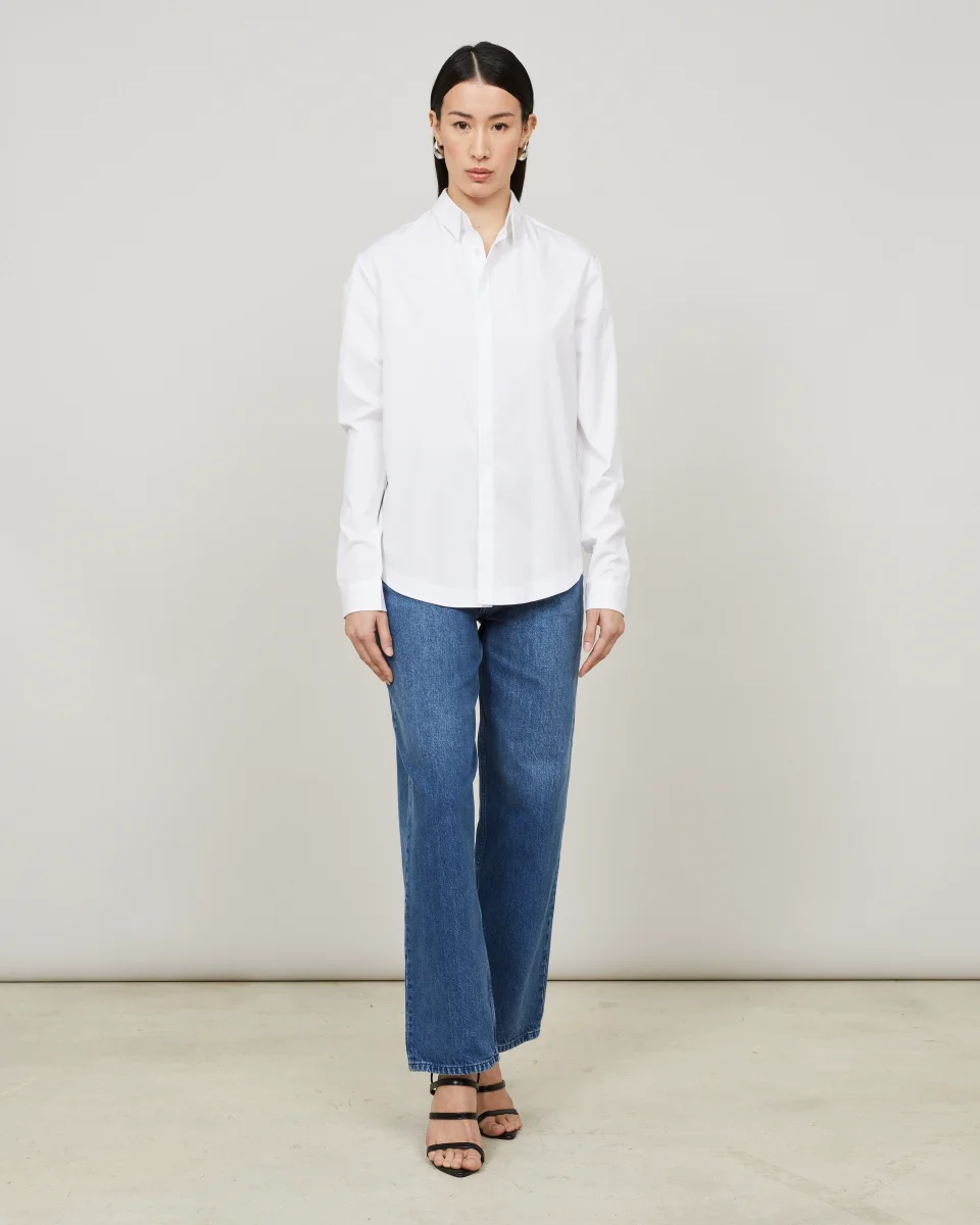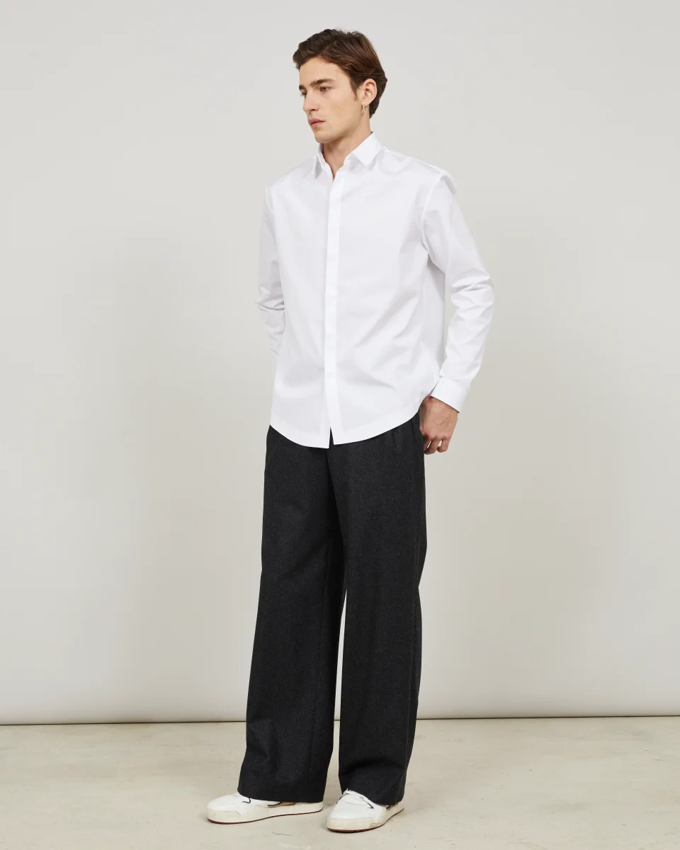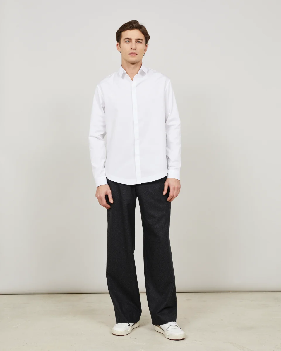 Chemise à la coupe classique, ORIGIN est coupée dans une popeline de coton égyptien Giza 87 qui lui confère une douceur exceptionnelle et un tombé impeccable. La chemise présente une silhouette droite, un col français, une patte de boutonnage cachée et un ourlet liquette surpiqué, signature de la marque.