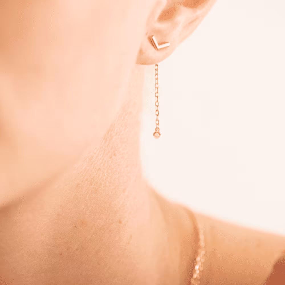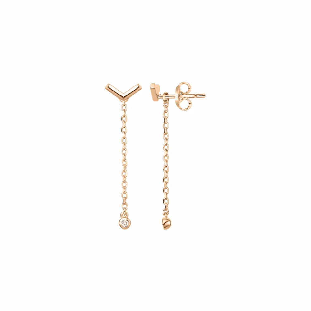 Découvrez ces pendants d’oreilles La Garçonne Diamant issue de la ligne Essentielle. Cette paire de boucles d’oreilles minimalistes est dotée d’une chaîne pendante au bout de laquelle est serti un magnifique diamant de 0.015 carats de qualité HSI. La boucle en forme de V affiche un look contemporain.