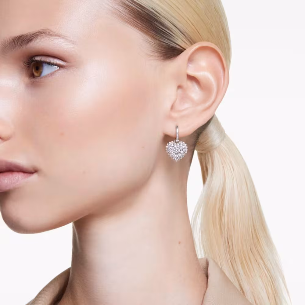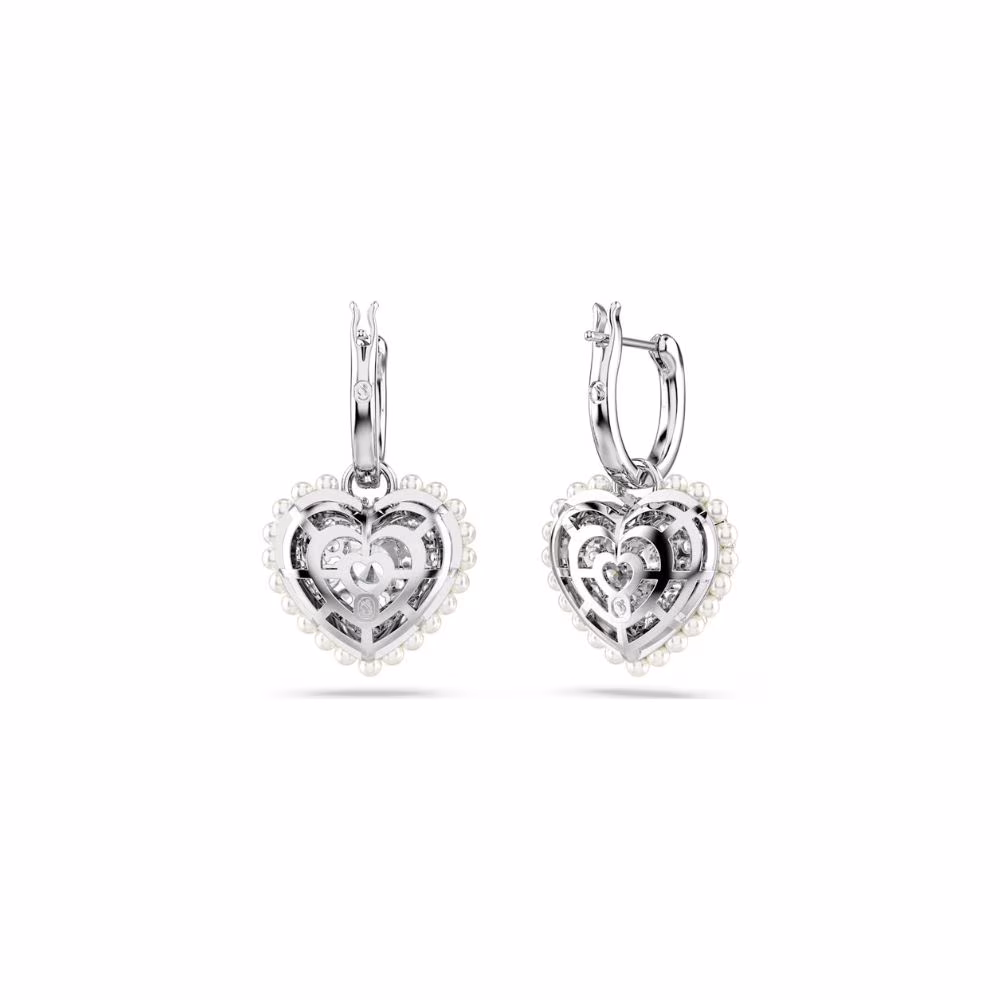 Pendants d’Oreilles Swarovski Hyperbola Coeur, rhodié, blanc