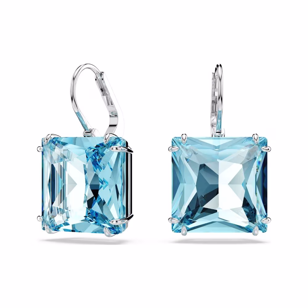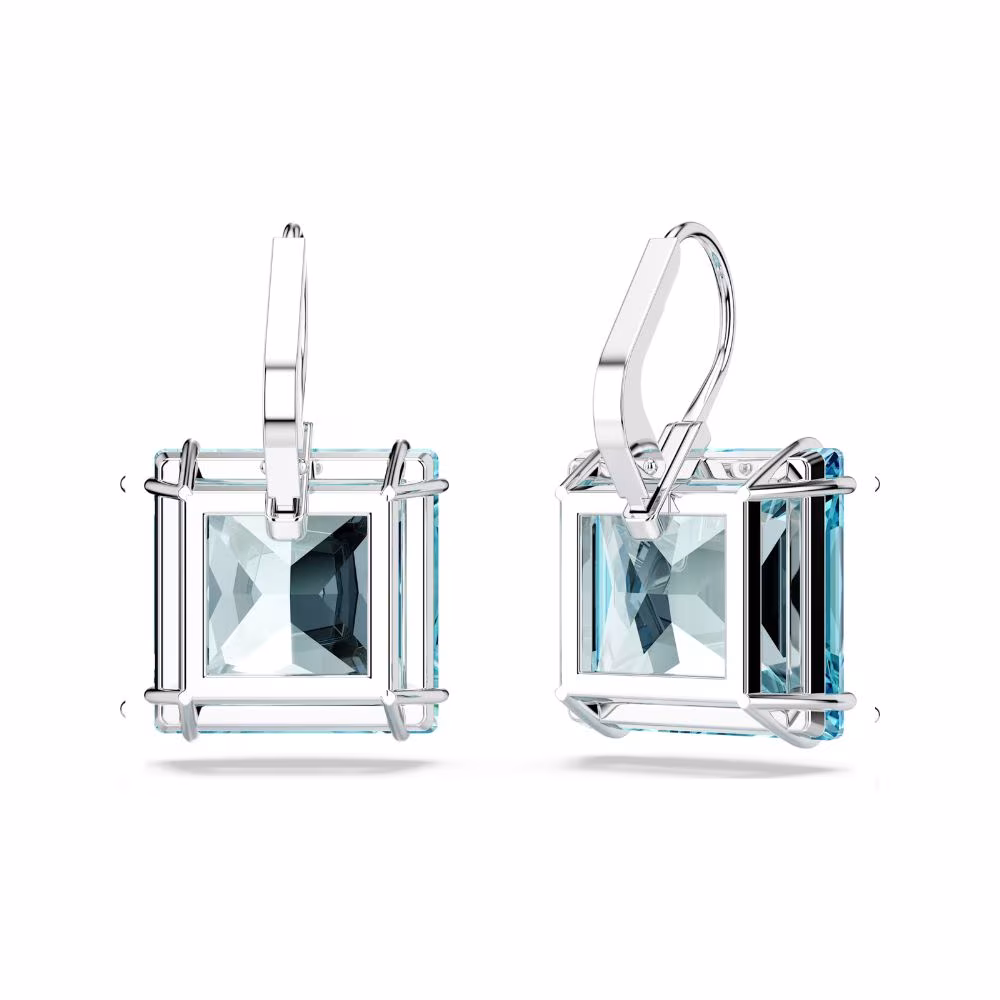 Pendants d’oreilles Swarovski Millenia Taille Carré, Bleues, Métal rhodié