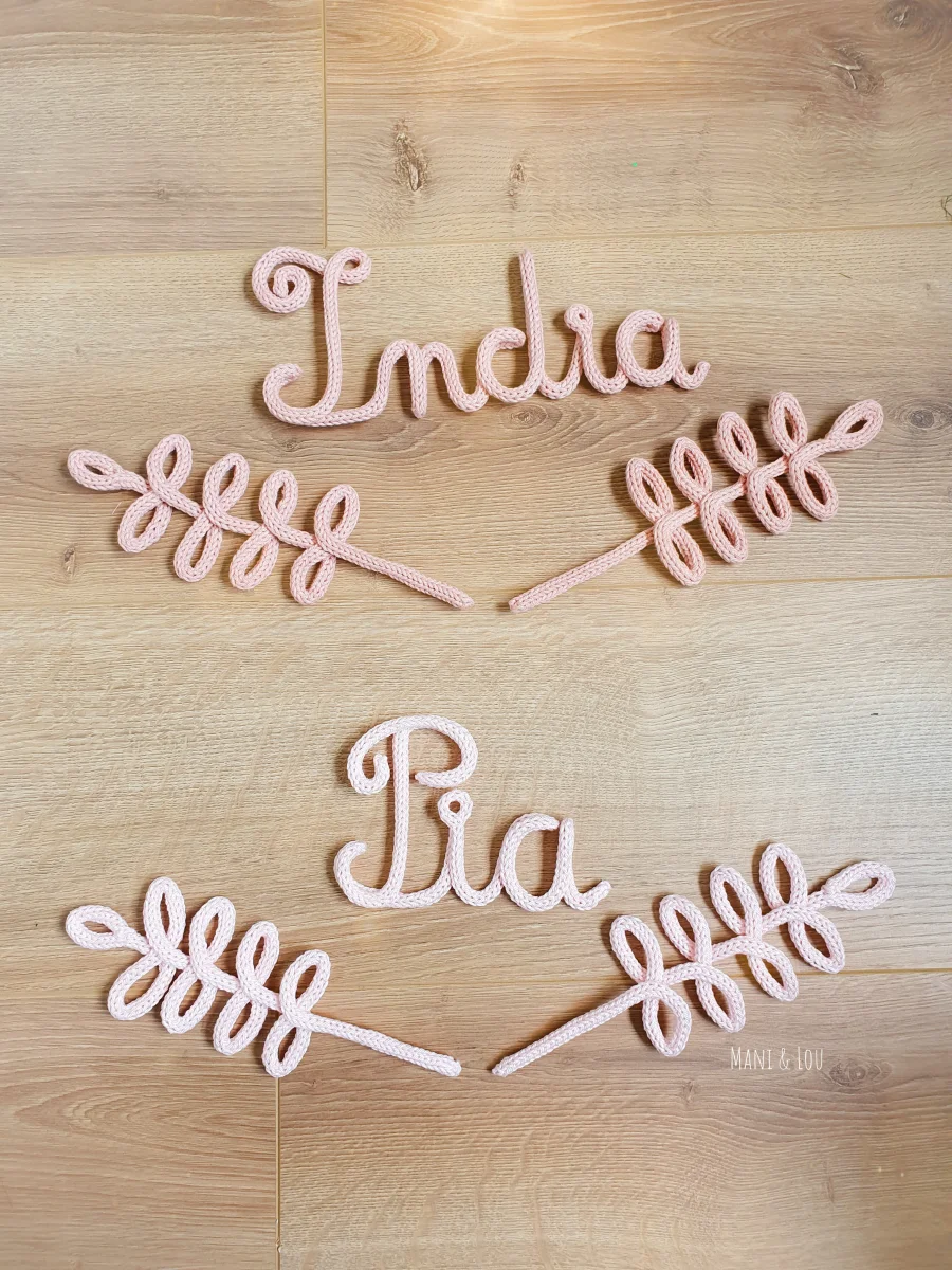 Offrez (-vous) donc un prénom en tricotin Mani & Lou avec ses jolie feuilles!