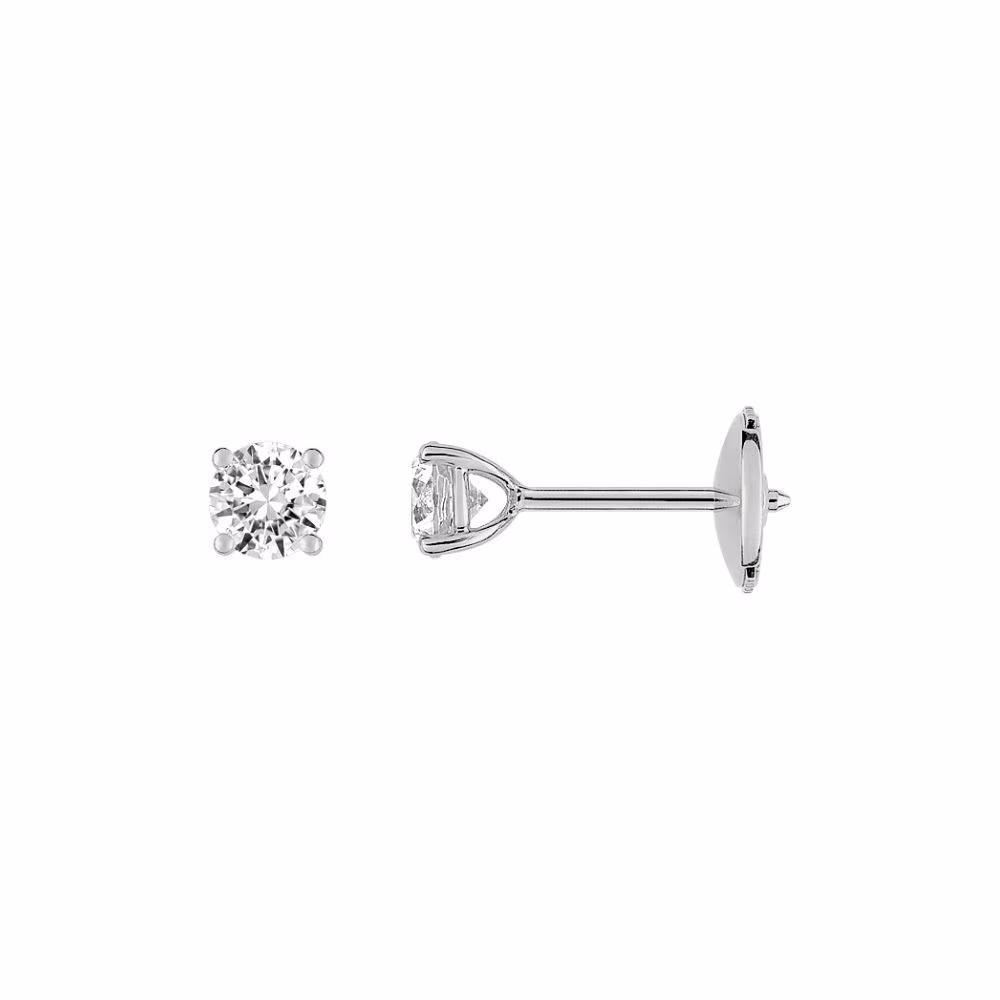 Ces élégantes puces d’oreilles en or blanc 18 carats (disponibles également en or jaune 18 carats) sont ornées de magnifiques diamants de qualité GSI, sublimés par un serti à 4 griffes qui assure une parfaite mise en valeur des pierres. Raffinées et intemporelles, elles sont idéales pour apporter une touche d’éclat à toutes vos tenues.