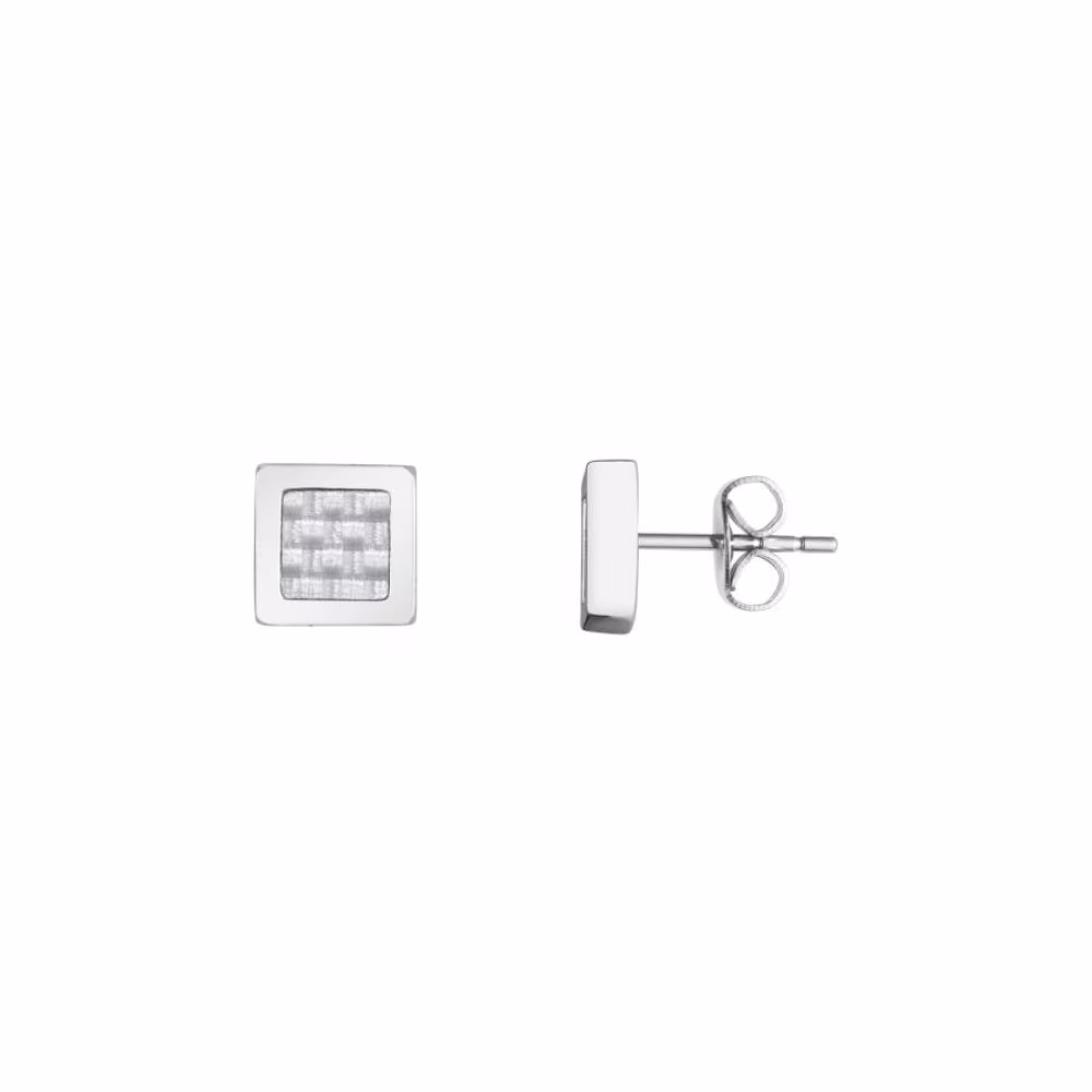Ces puces d’oreilles Phebus pour hommes sont en acier argentés 316L de forme carrées et contiennent un élément en carbone blanc discret et moderne.[/vc_column_text][/vc_column][/vc_row][vc_row][vc_column]