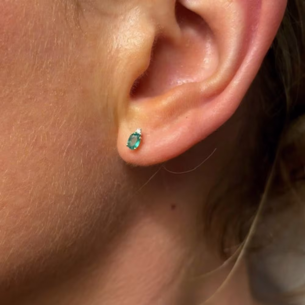 Puces d’Oreilles Emeraude Diamants Or Blanc Collection Joséphine