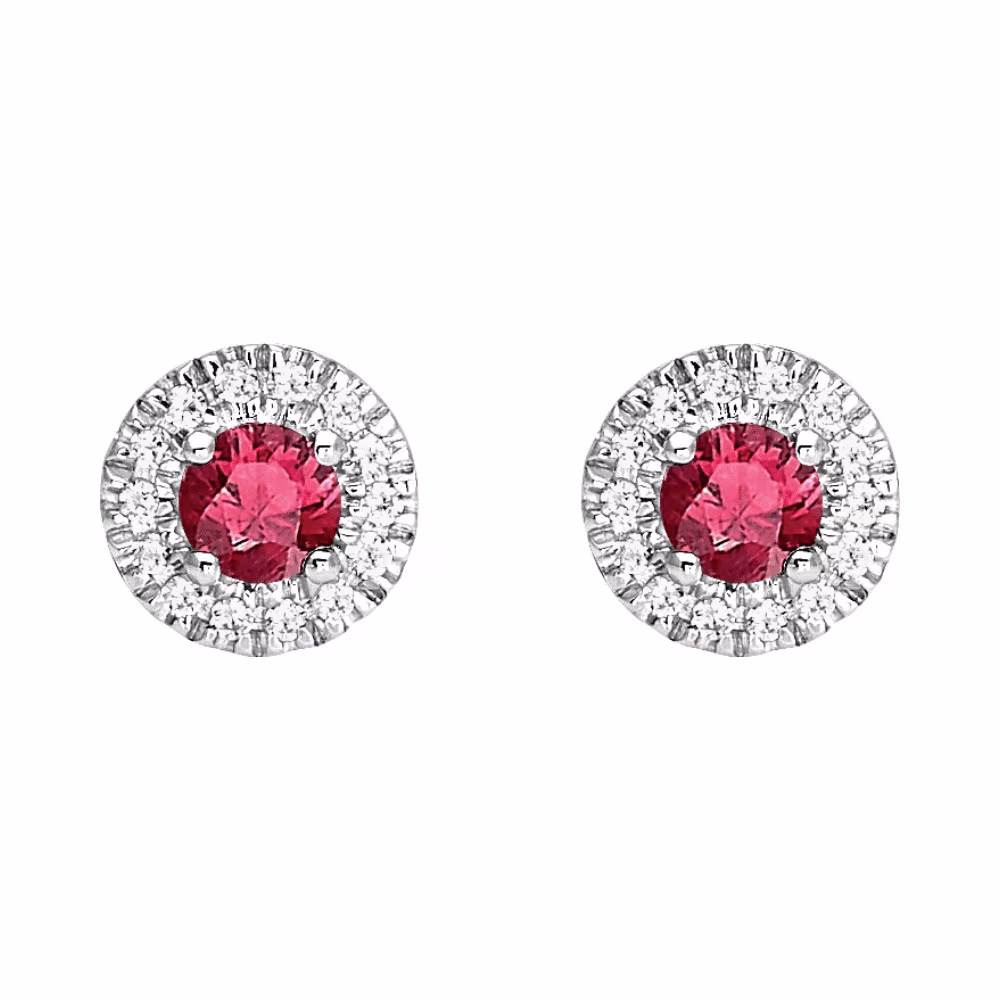 Puces d’Oreilles Rondes Rubis et Diamants Or Blanc