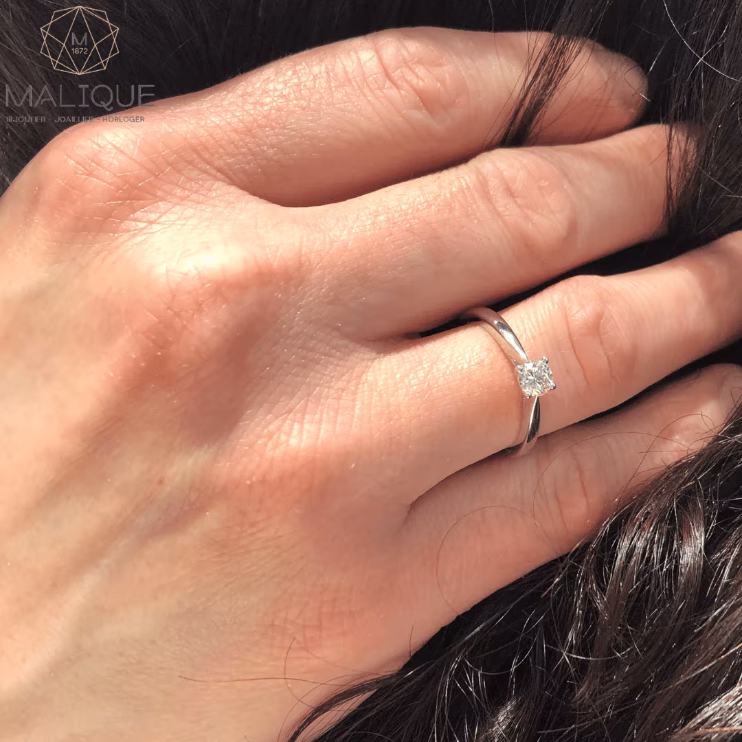 Chaque détail de cette bague a été soigneusement conçu pour souligner la beauté naturelle du diamant. La monture à 4 griffes offre une présentation délicate, permettant à la pierre précieuse de briller de tous ses feux.