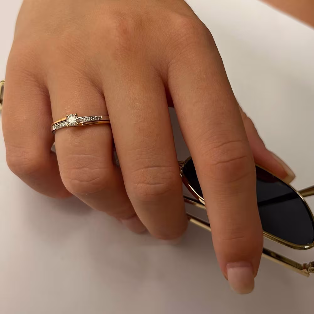 Offrez à votre bien-aimée un bijou aussi précieux que votre amour avec cette magnifique bague solitaire Soline en or blanc et rose 18 carats. Cette bague est composée d’un diamant central de 0,16 carats entouré de 12 autres diamants totalisant 0,06 carats, pour un total de 0,22 carats de diamants. Le contraste subtil entre l’or blanc et l’or rose ajoute une touche d’élégance à cette bague intemporelle.