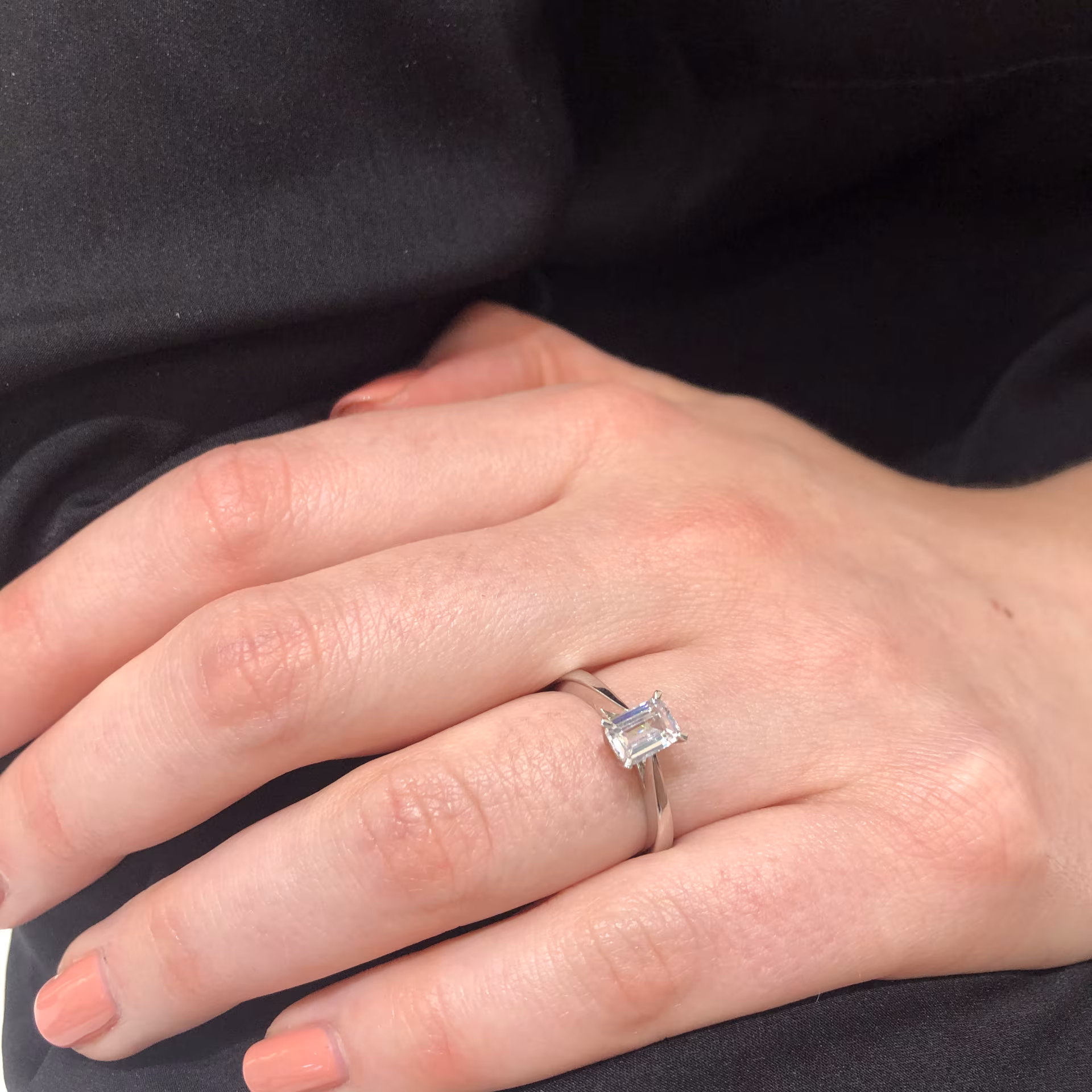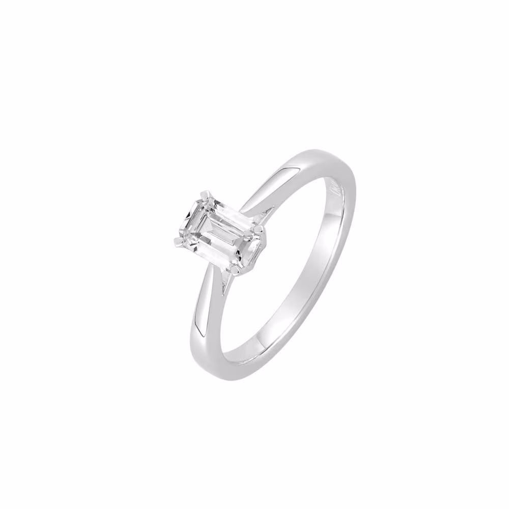Solitaire diamant synthétique 0.70ct taille émeraude or blanc