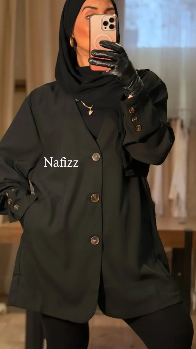 Cette veste blazer Dina est une pièce d’élégance à la mode. Avec son style oversize, elle peut être portée comme un blazer ou comme une robe pour différentes occasions. Cette veste est un indispensable pour un look unique et élégant.