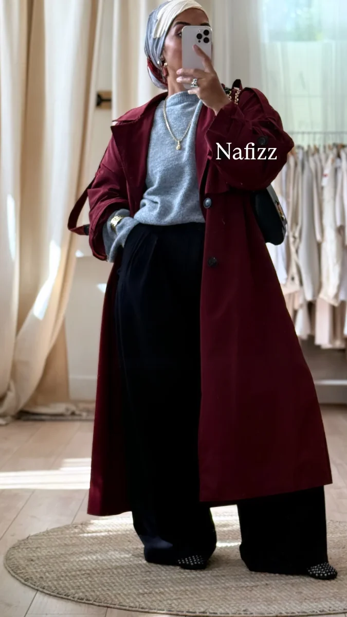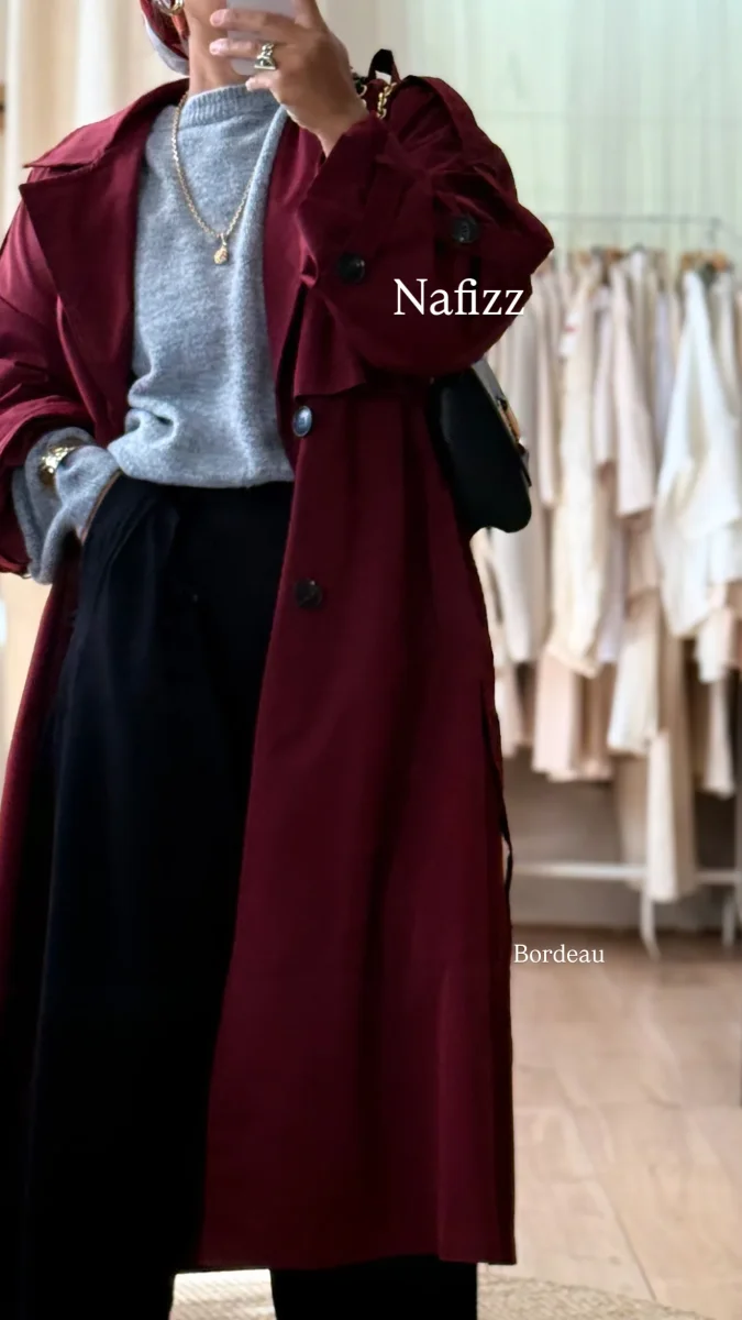 Trench impermeable Oversize taille unique (36-48) le mannequin mesure 1,65 m Dispose de boutons à l’avant et une ceinture pas de fente à l’arrière la capuche ne fait pas parti du trench
