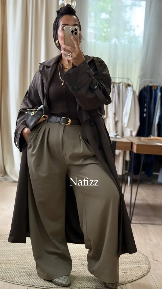 Trench impermeable Oversize taille unique (36-48) le mannequin mesure 1,65 m Dispose de boutons à l’avant et une ceinture pas de fente à l’arrière la capuche ne fait pas parti du trench